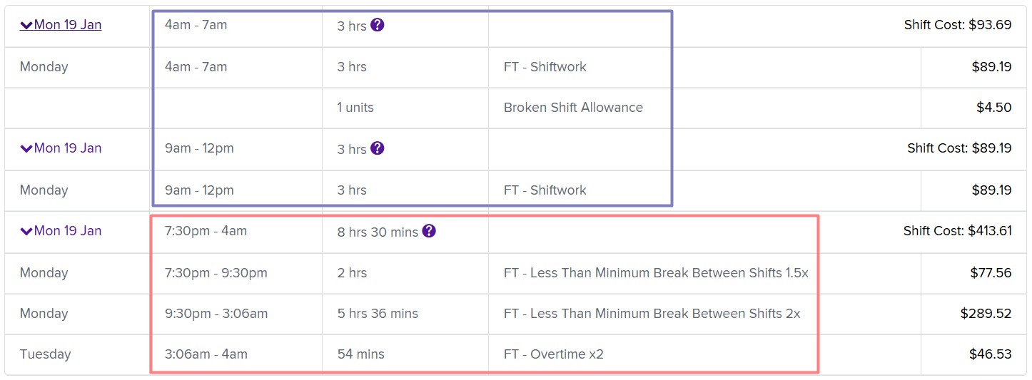 Shifts consolidation has also been updated across all rule sets to "consolidate shifts within 1 hour of each other" in line with clause 17.2 where broken shifts are identified with "a break between them of longer than one hour".