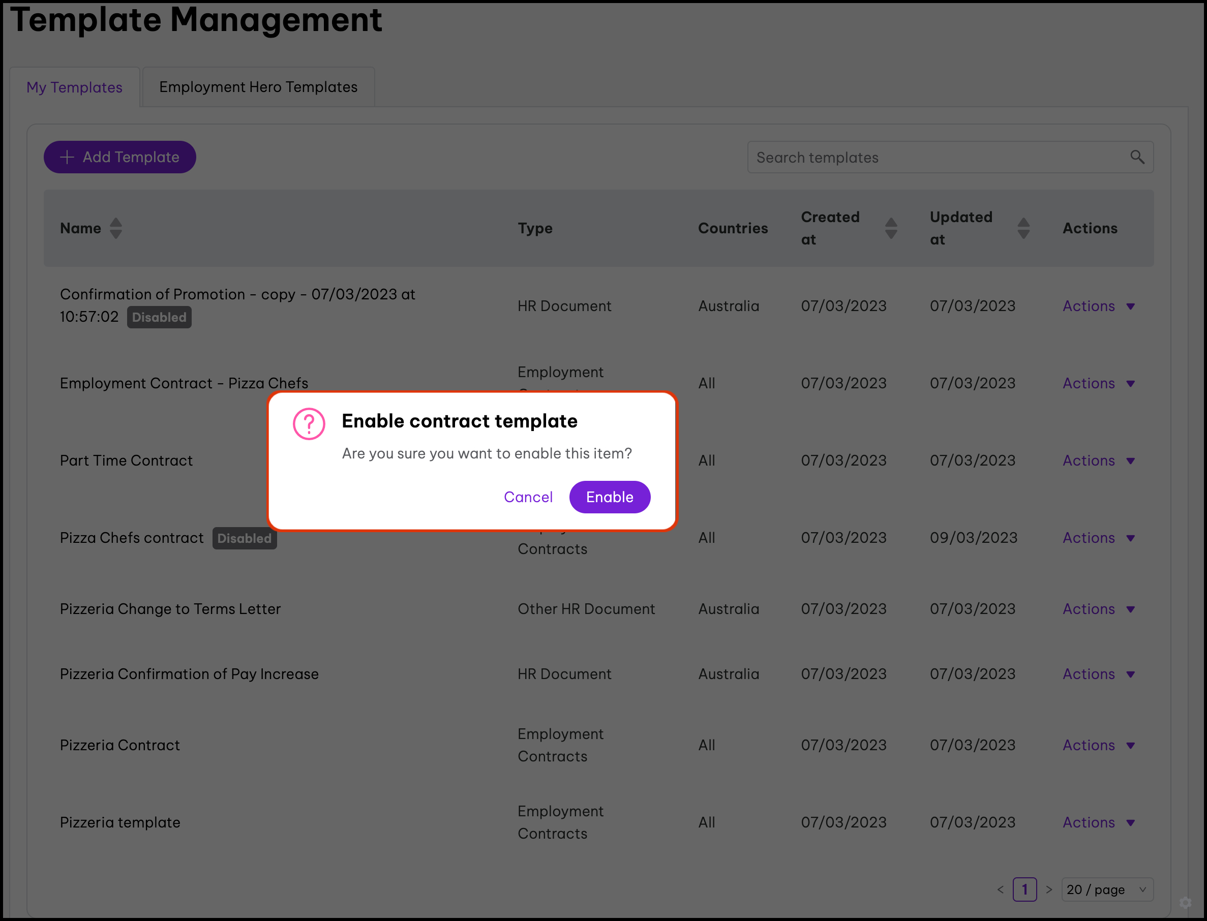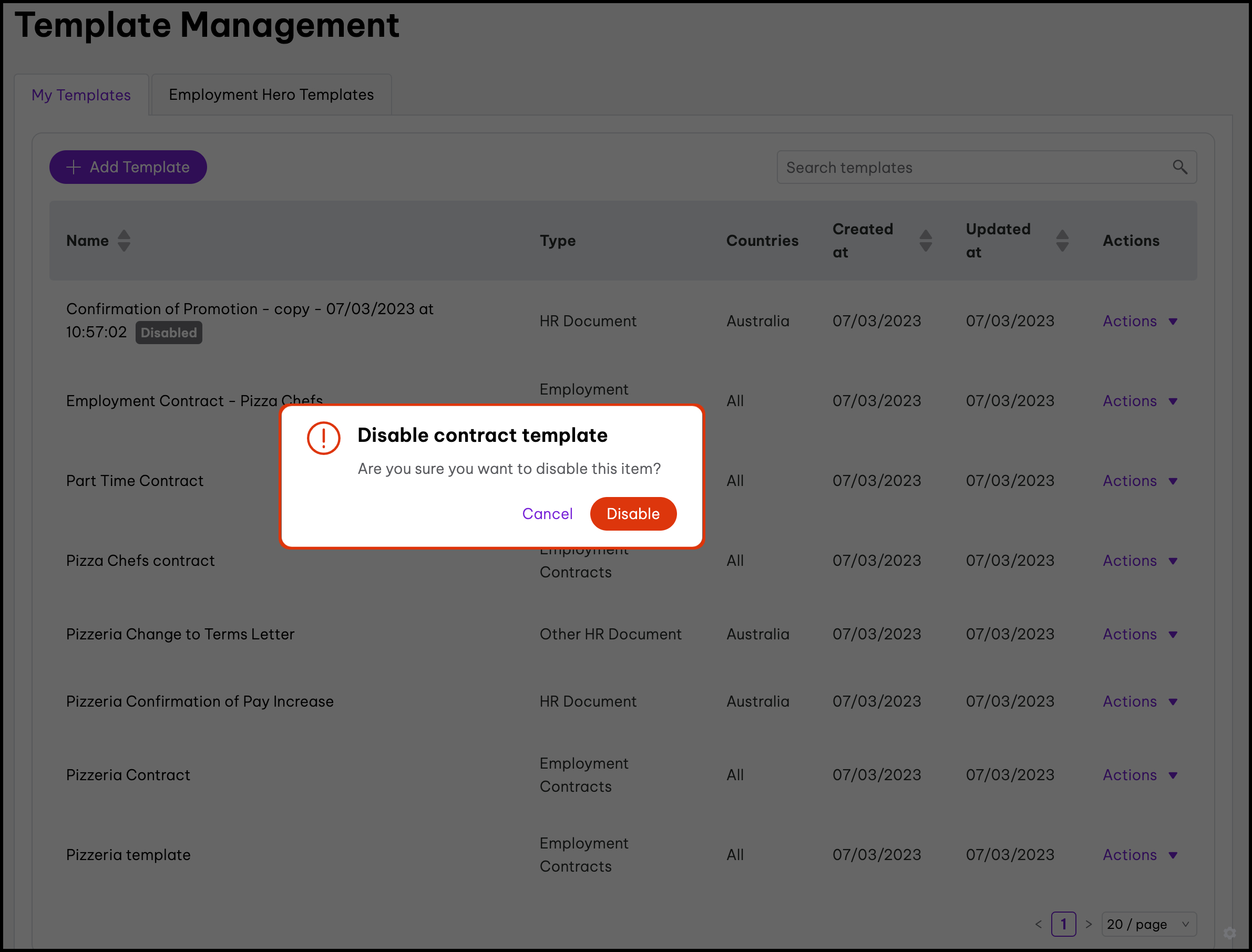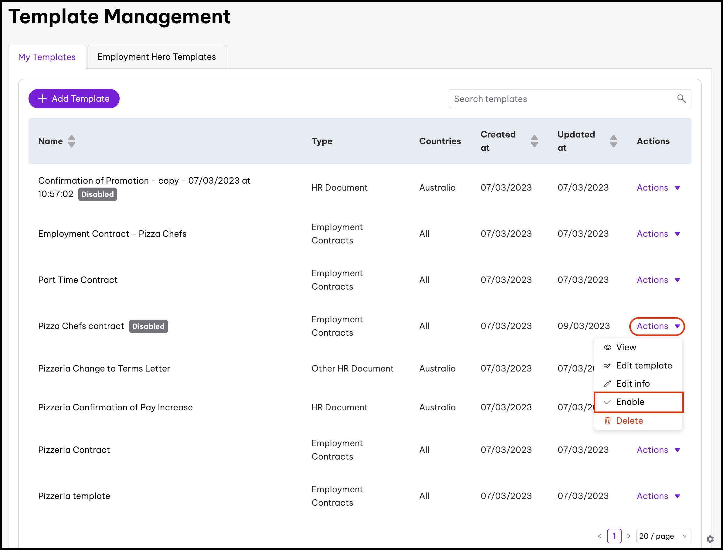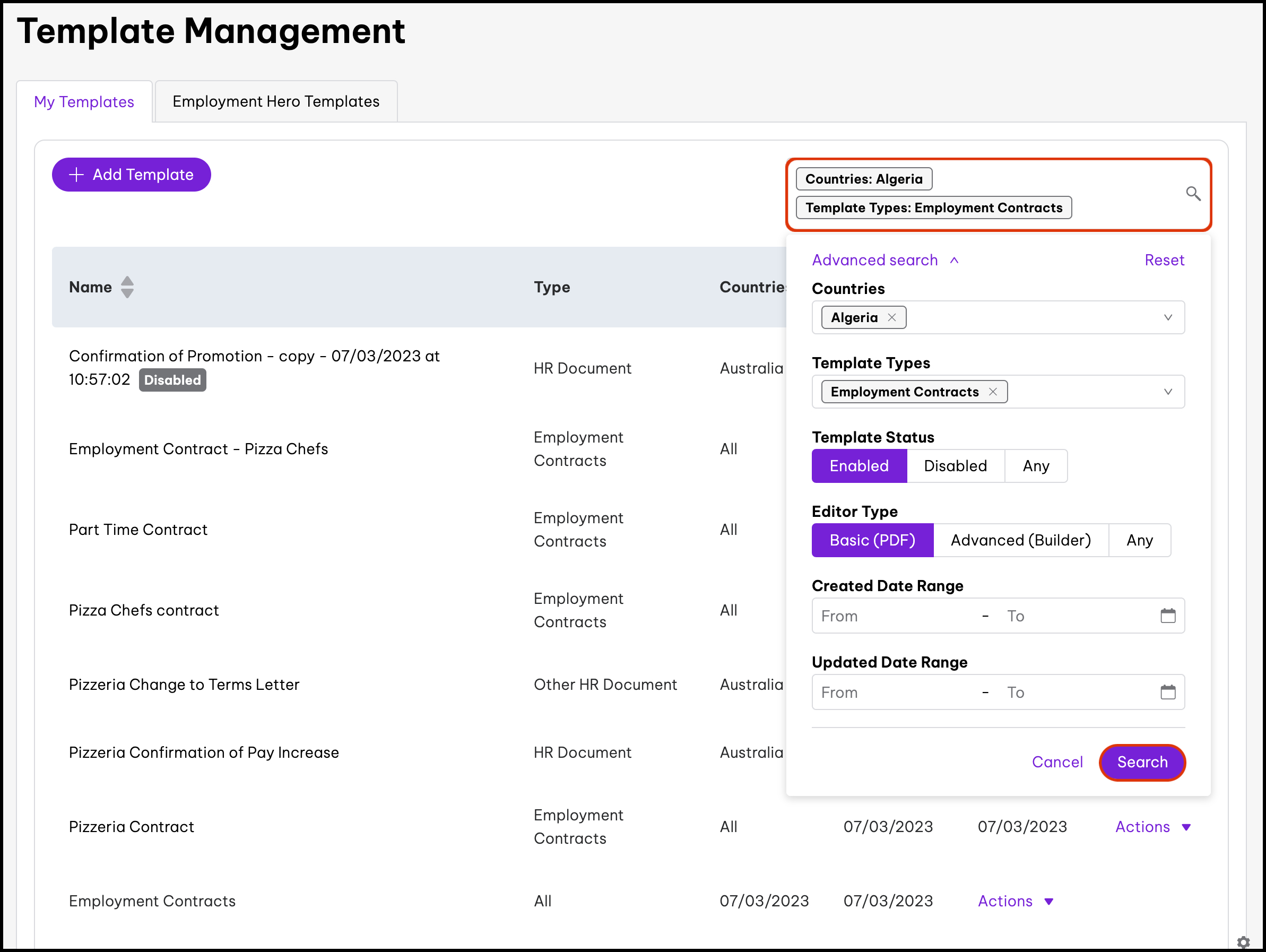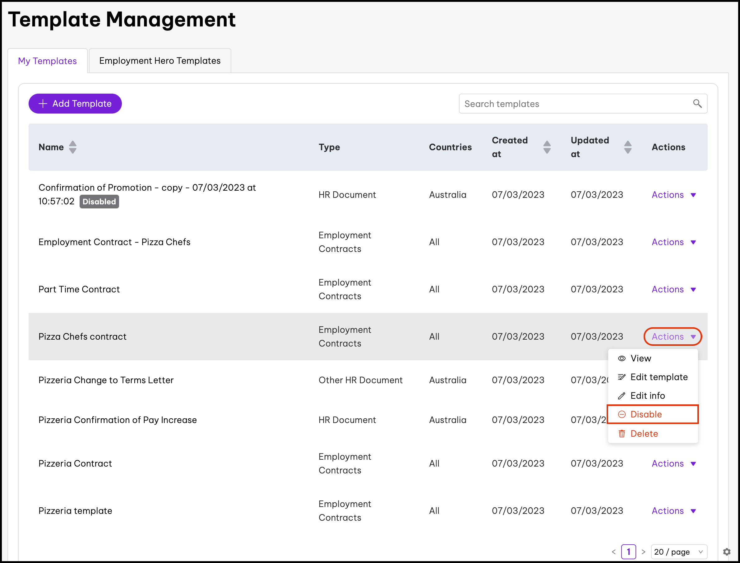 The basic template editor feature allows you to upload your PDF documents. You can then add in variables such as an employee's full name, job title, and probation length. The feature also includes the ability to disable documents, edit the information, and delete it if you created it in error. When using our basic template editor, you will not be able to clone a document.