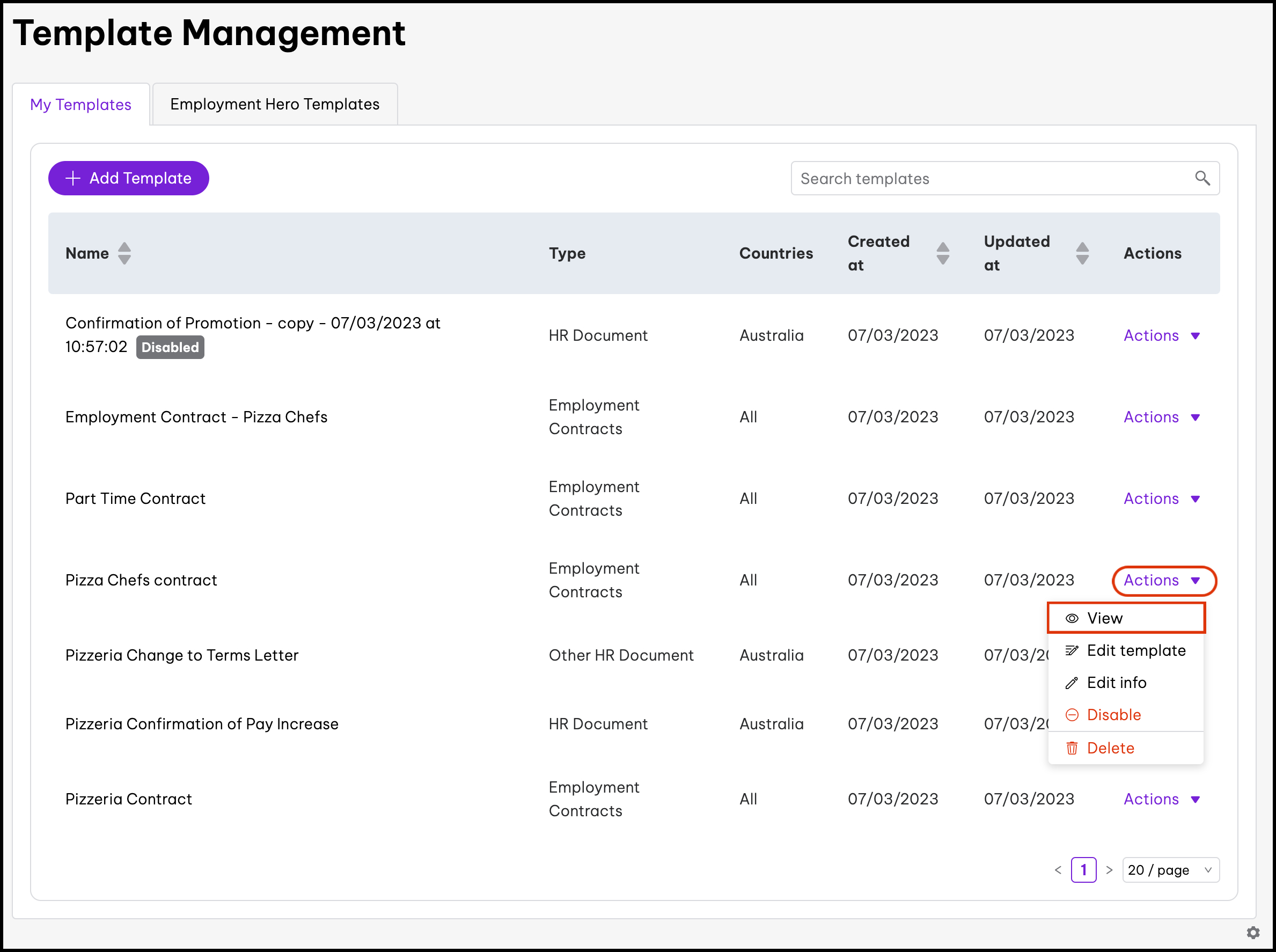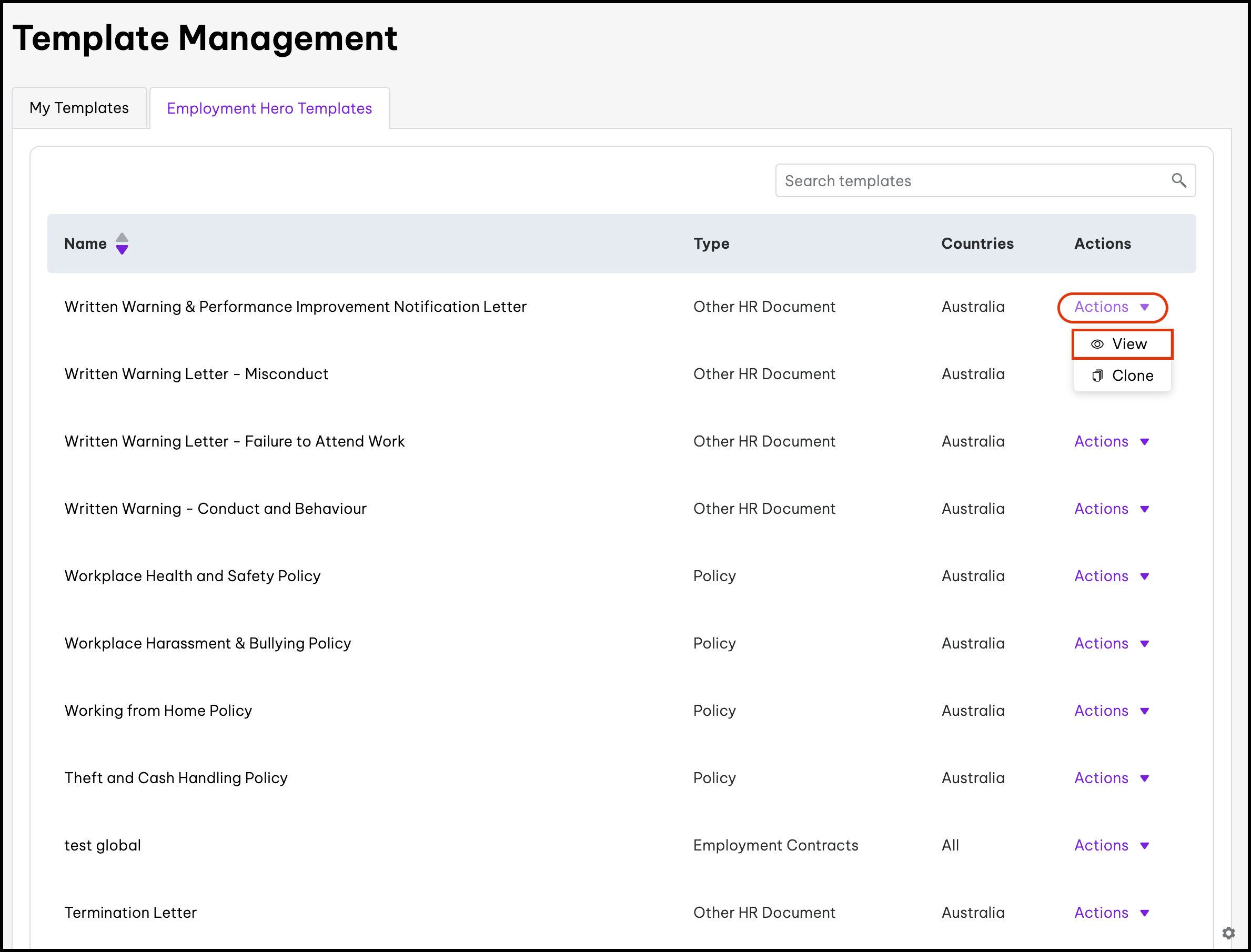 - Create and change organisation policies This feature allows you to choose from Employment Hero's pre-made content or to upload your own documentation and then share this content with your employees.