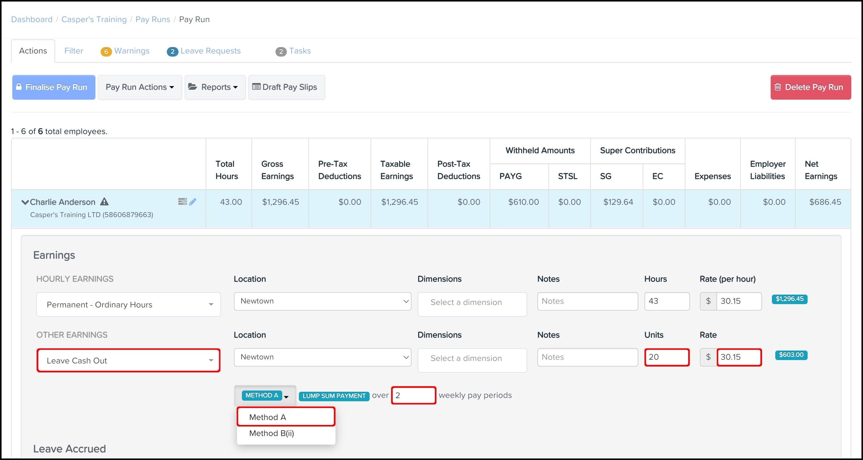 - If you are paying Leave Loading, follow Steps 5 and 6 again.