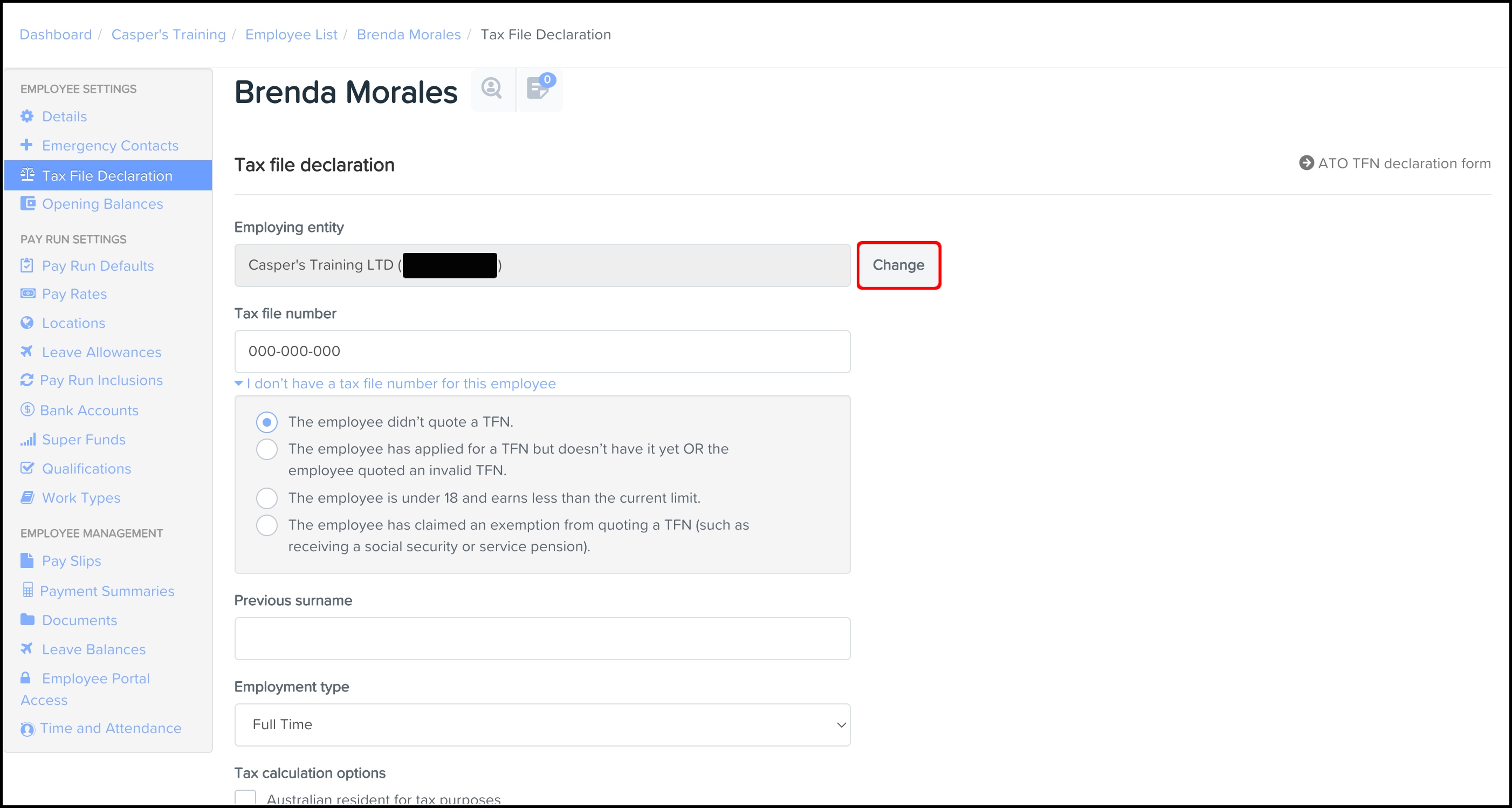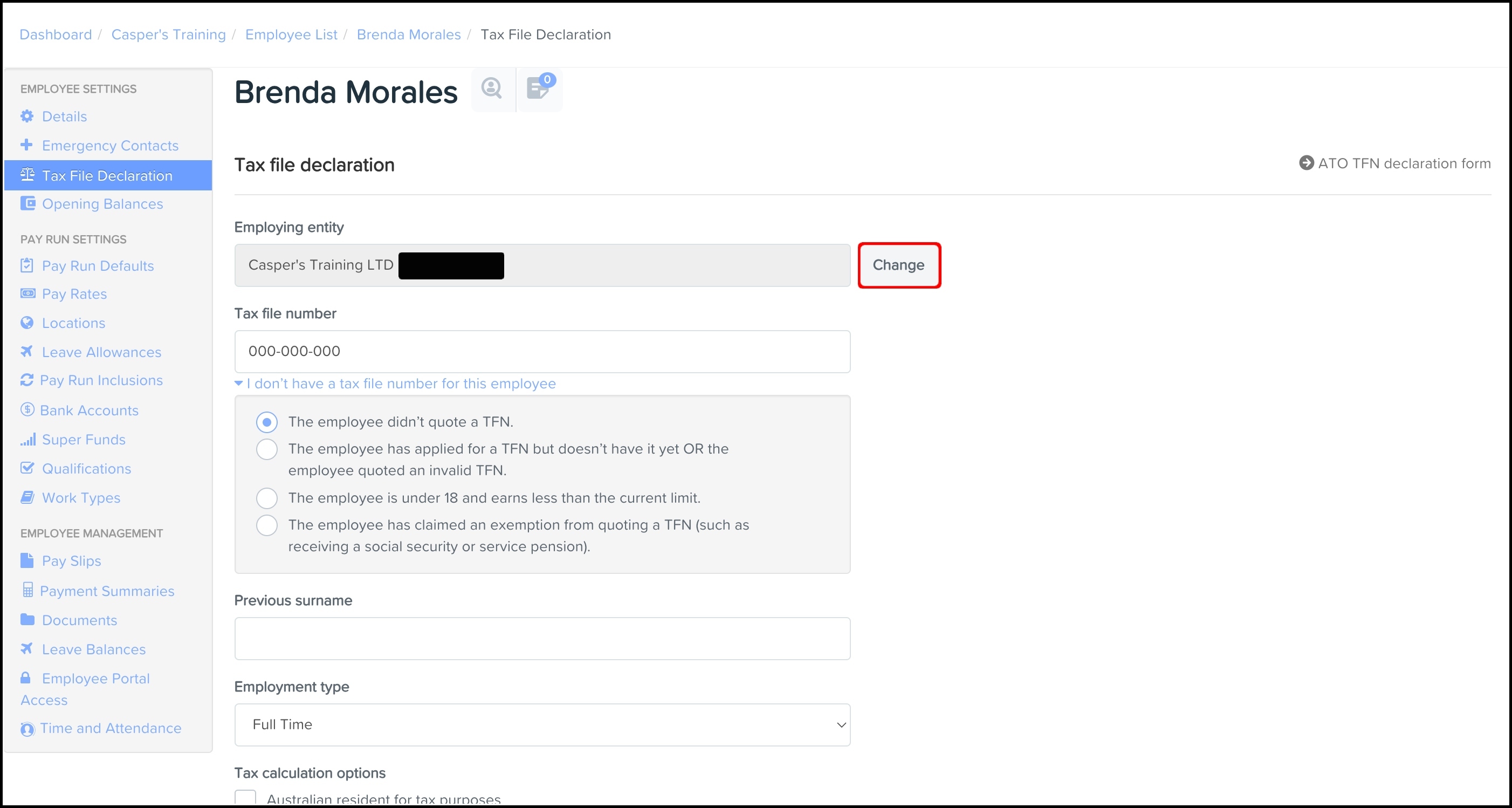 - Under Employee Settings, click Tax File Declaration.