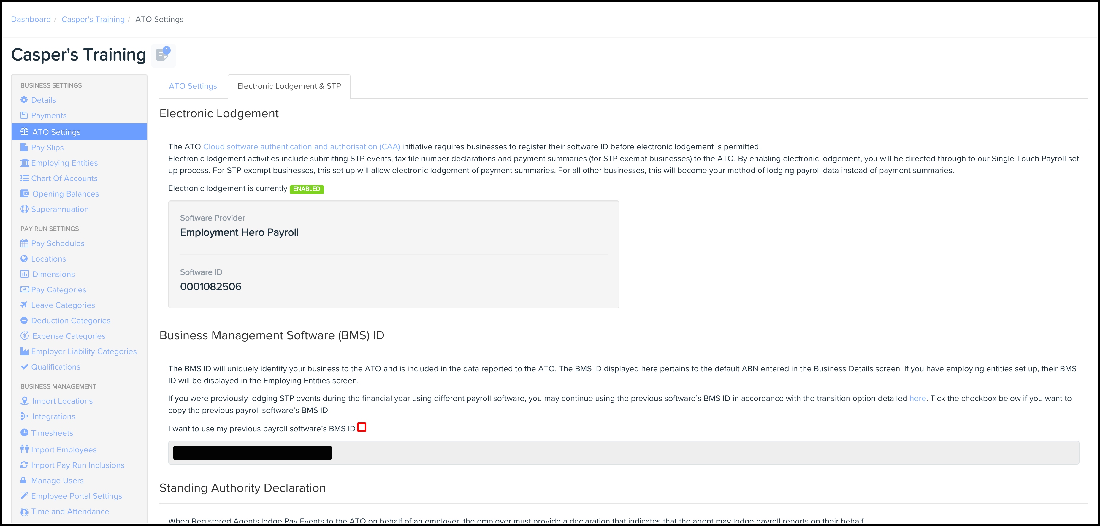 - The I want to use my previous payroll software’s BMS ID checkbox is ticked, but the BMS ID has not been changed.