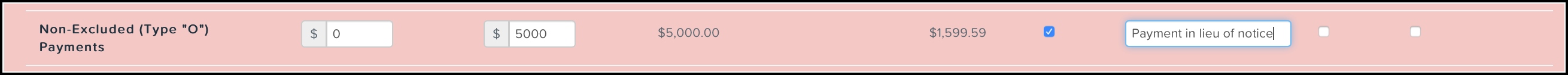 A payment in lieu of notice is added as a lump sum payment. When you've worked out the lump sum based on the applicable period of notice and how much, if any, your employee will work, add a Type O or Type P lump sum payment, depending on the date of termination. Specifically,