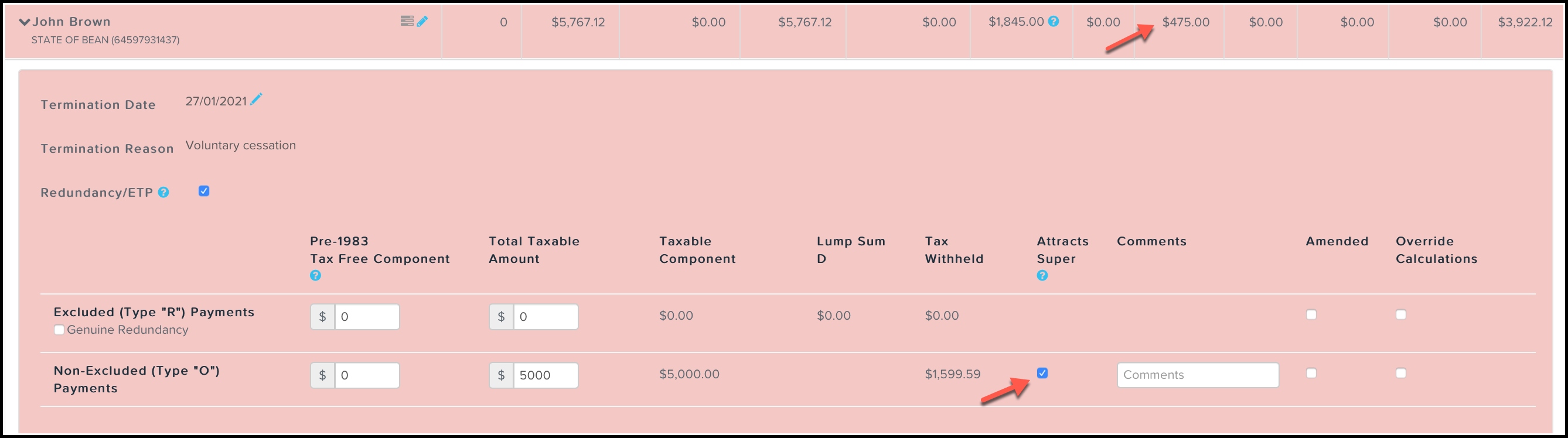 See our article Managing employee terminations within a pay run | Payroll Web Platform for more information.