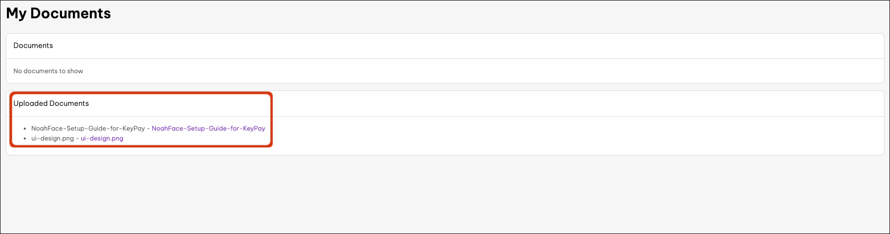 The 'My Documents' feature is where you can find and print your important employment documents, such as your employment agreement and policies, once they are finalised or awaiting your signature. Employees can only see their own assigned documents here; administrators or managers need to go to the employee's profile to view them.