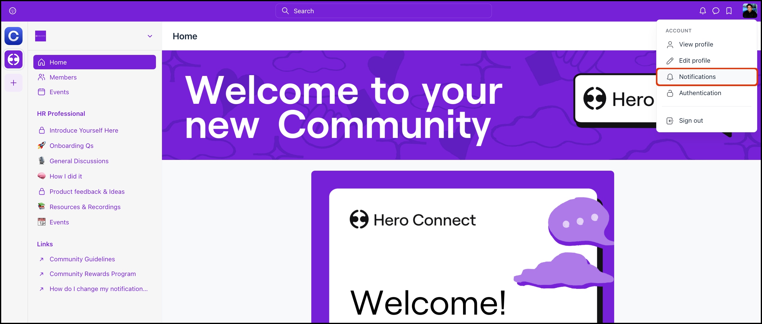 Hero Connect supports notifications so that you can stay informed on particular topics, or keep track of any questions that you have raised with the community.