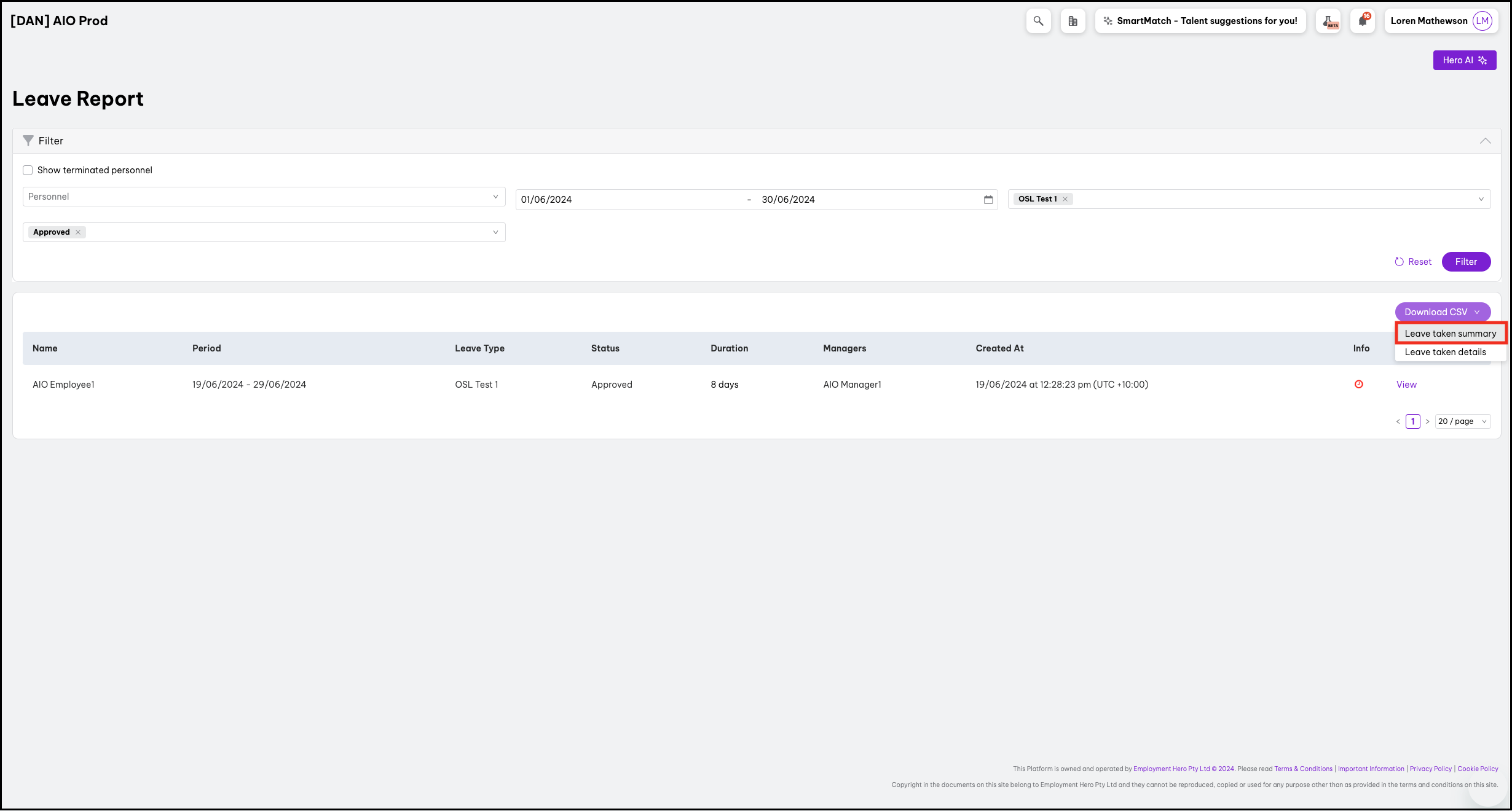 To monitor absenteeism, you can view the Leave Taken Summary in the leave report.