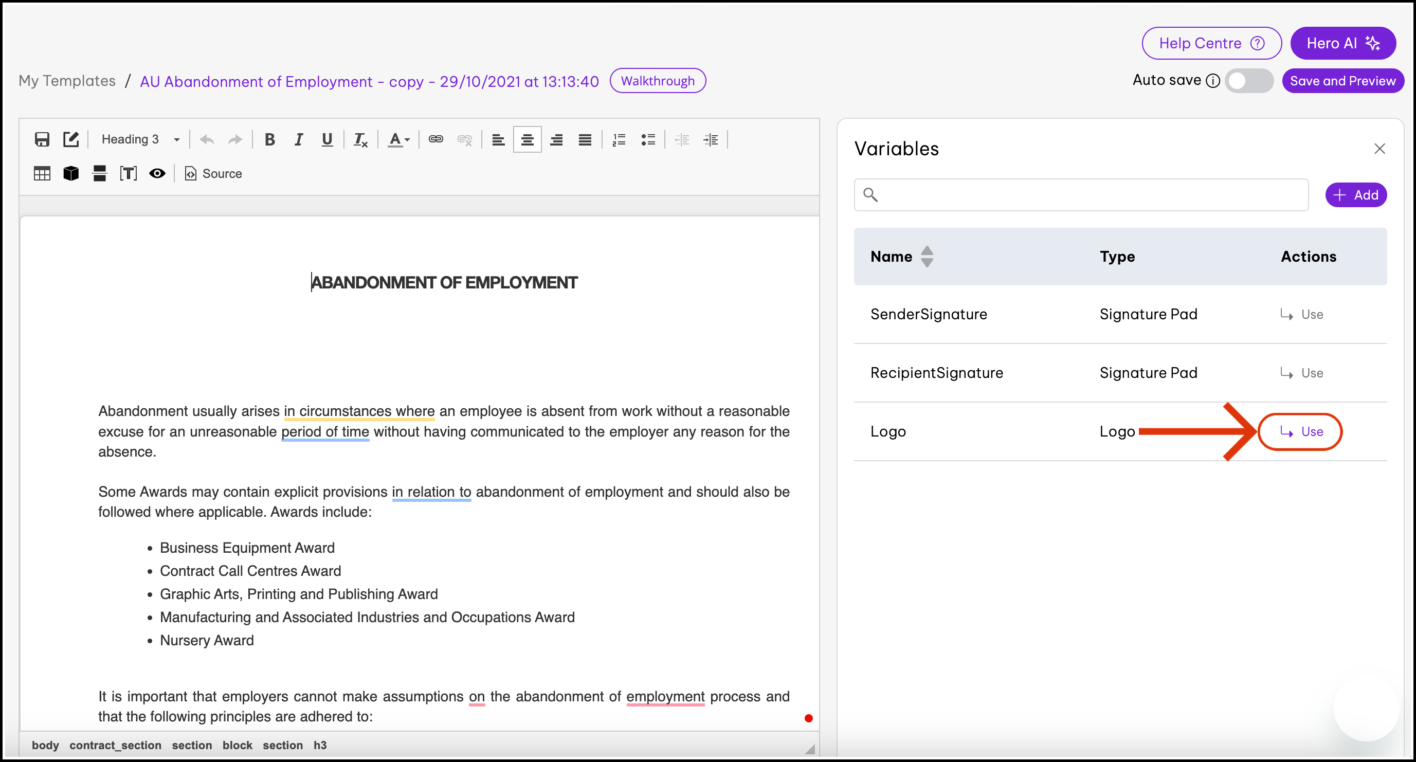 This article shows how to add a logo to your documents, through the document templates. You will first need to upload a logo to your company's Employment Hero account. This can then be used in your documents.