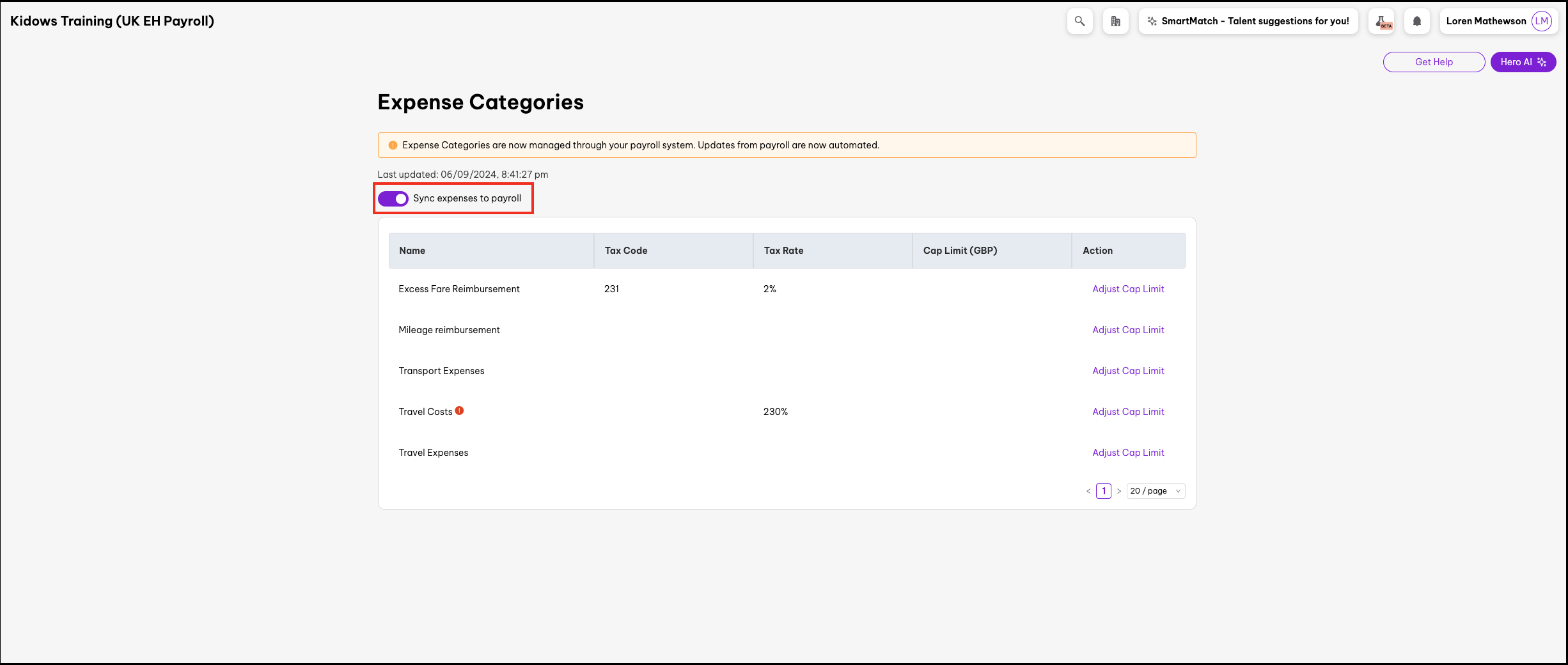 - Ensure that Sync expenses to payroll has been toggled on so that your new mileage reimbursement expense category syncs to Employment Hero.