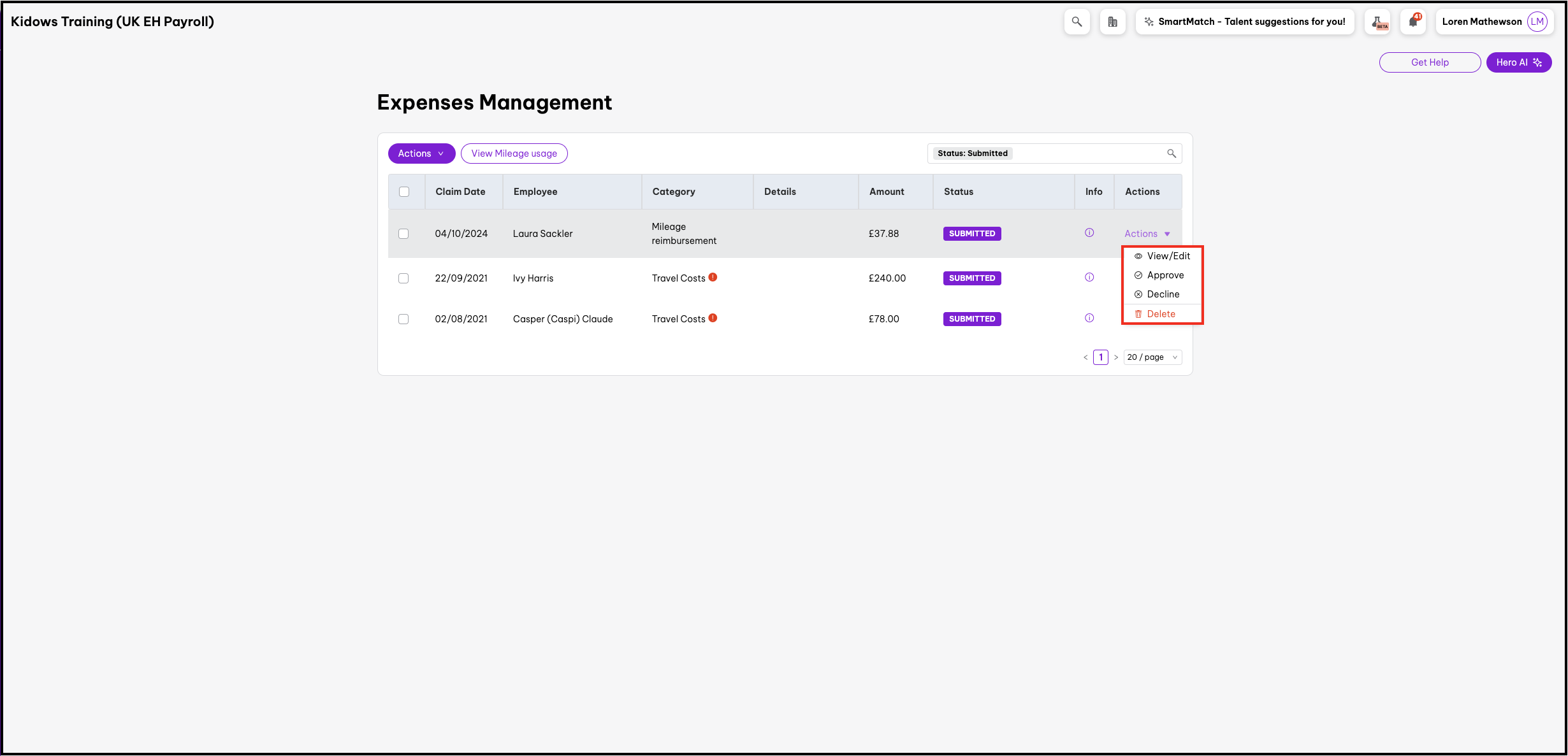 - Here you can View/Edit, Approve, Decline, or Delete the expense claim request.