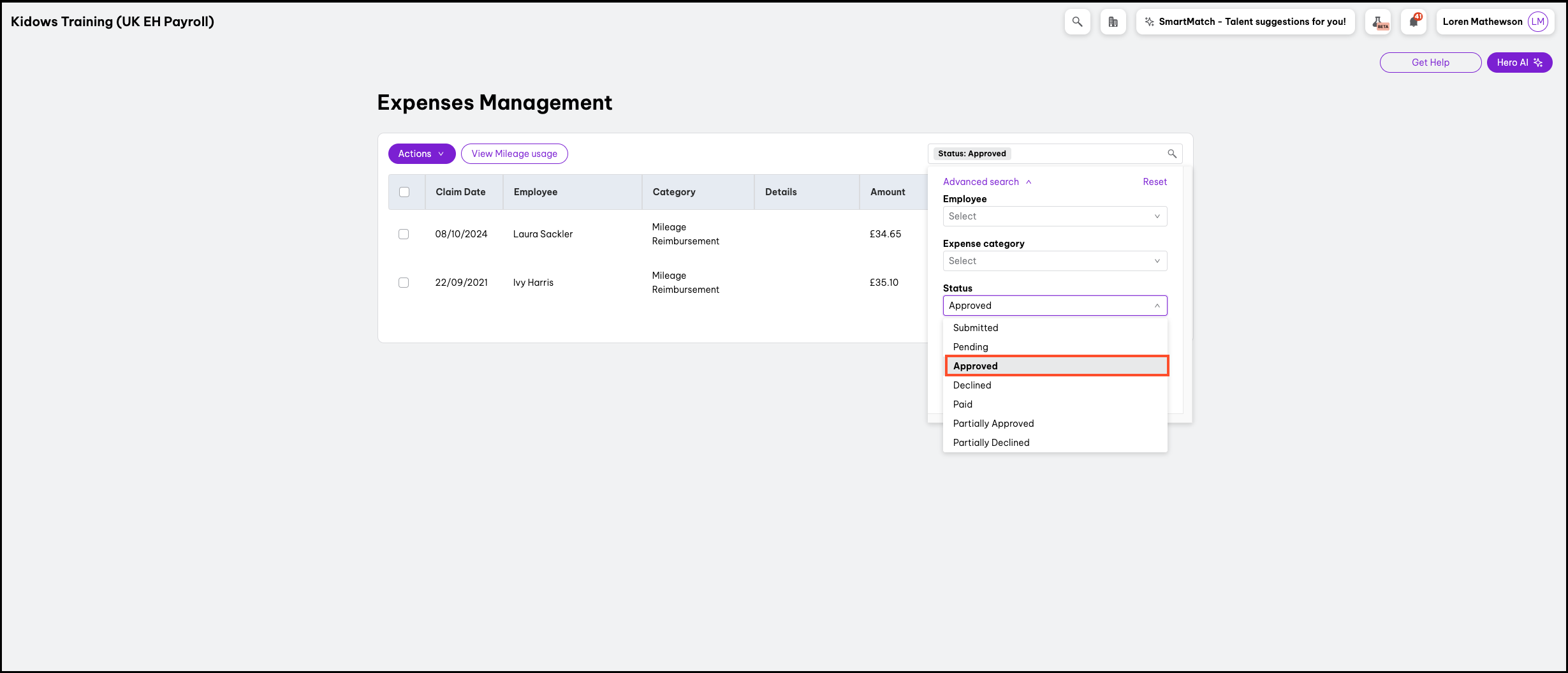 - Step 3: An admin user approves the mileage reimbursement expense claim