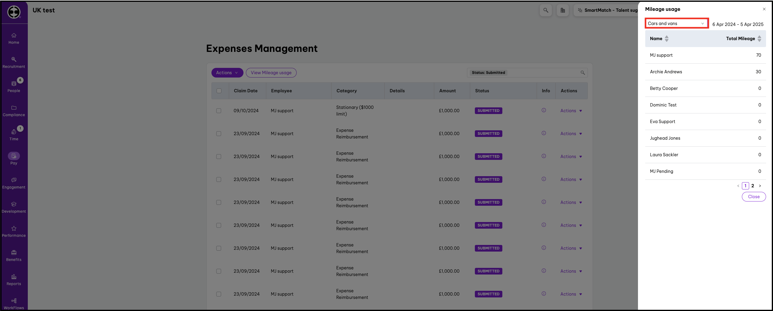 Employees can claim reimbursement at the default rate outlined on the UK government's page: Travel — mileage and fuel rates and allowances. By referring to this page before submitting a claim for reimbursement, employees can ensure they claim the most up-to-date amount available.