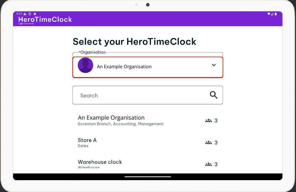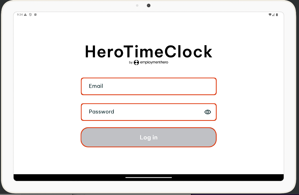 - Open the Employment Hero Time Clock app on your tablet.