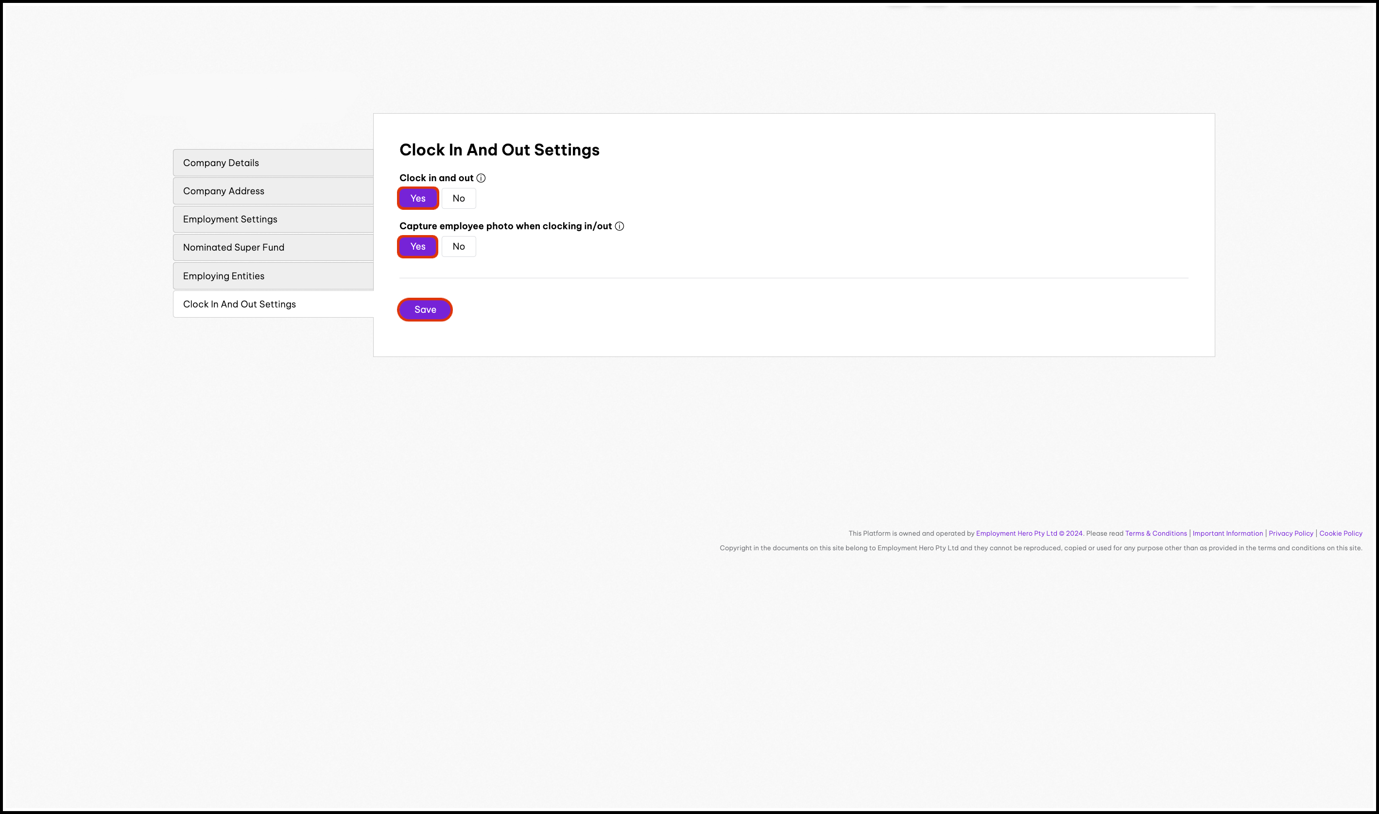 To ensure Clock in and out settings are active, follow this process: