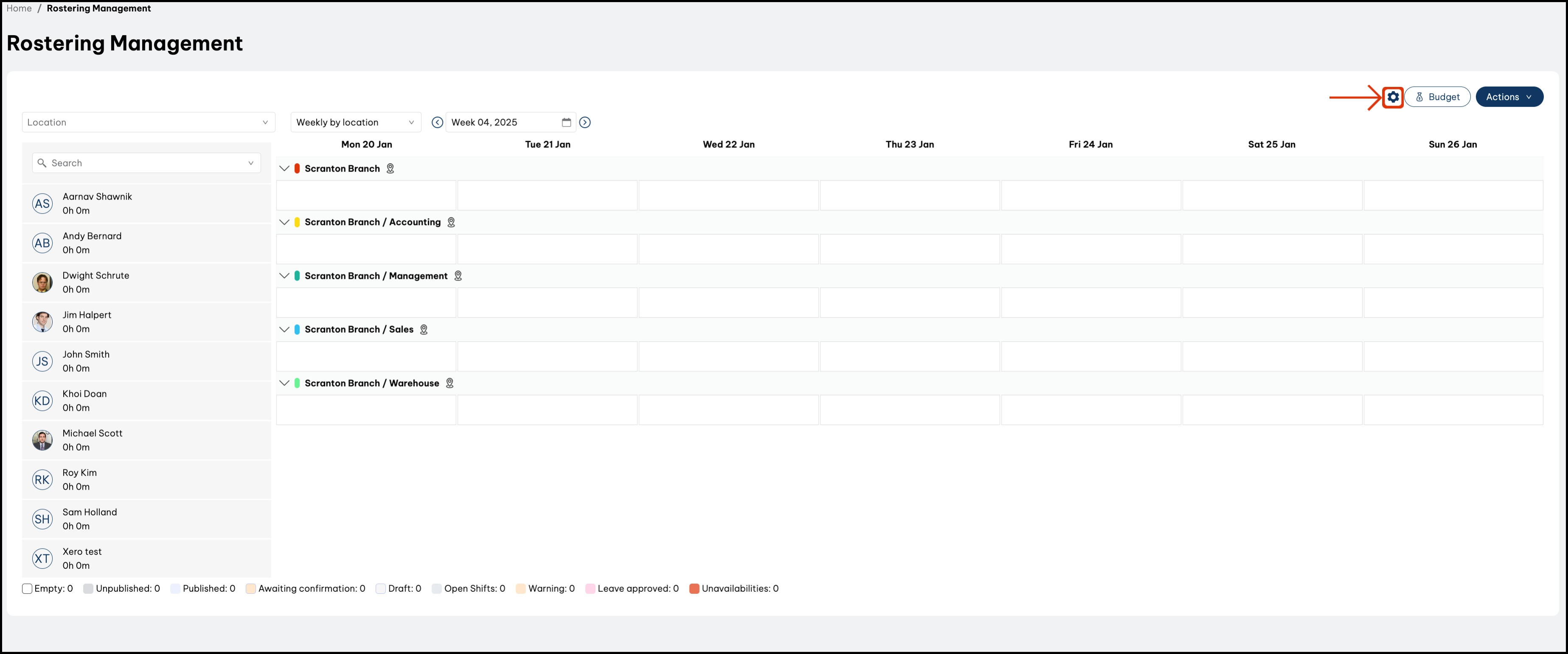 - On the Time submenu that will now appear, click Rostering Management.