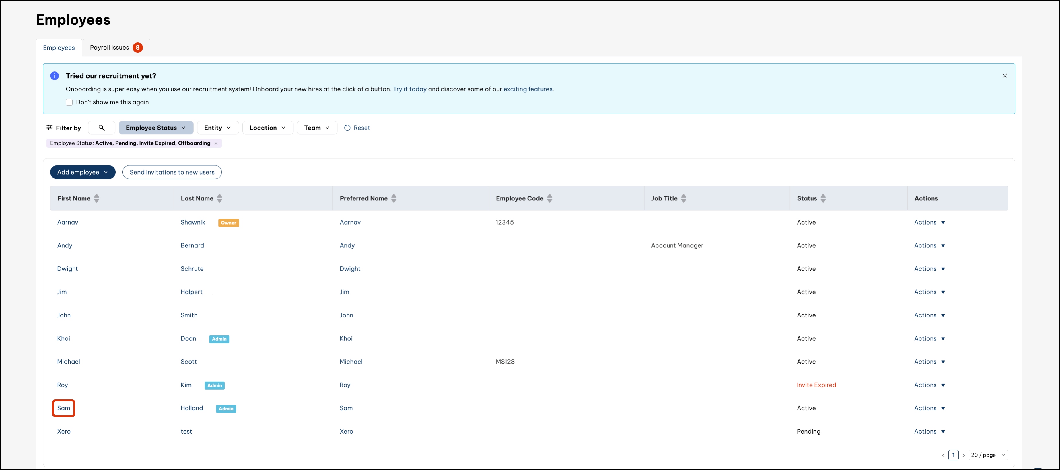 As each employee confirms their passcode, their Kiosk access status will go from Awaiting passcode to Enabled on your Employment Hero platform.