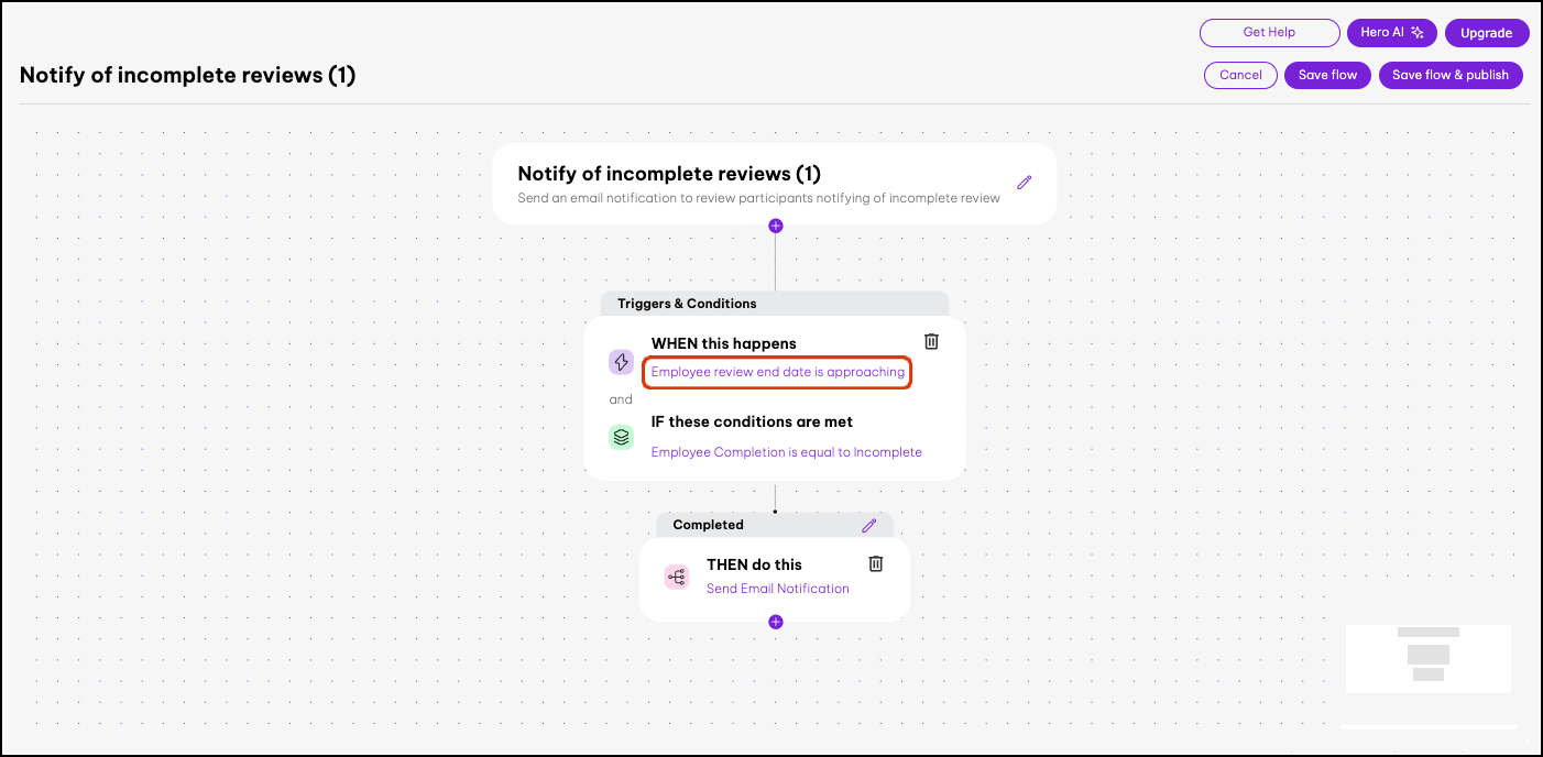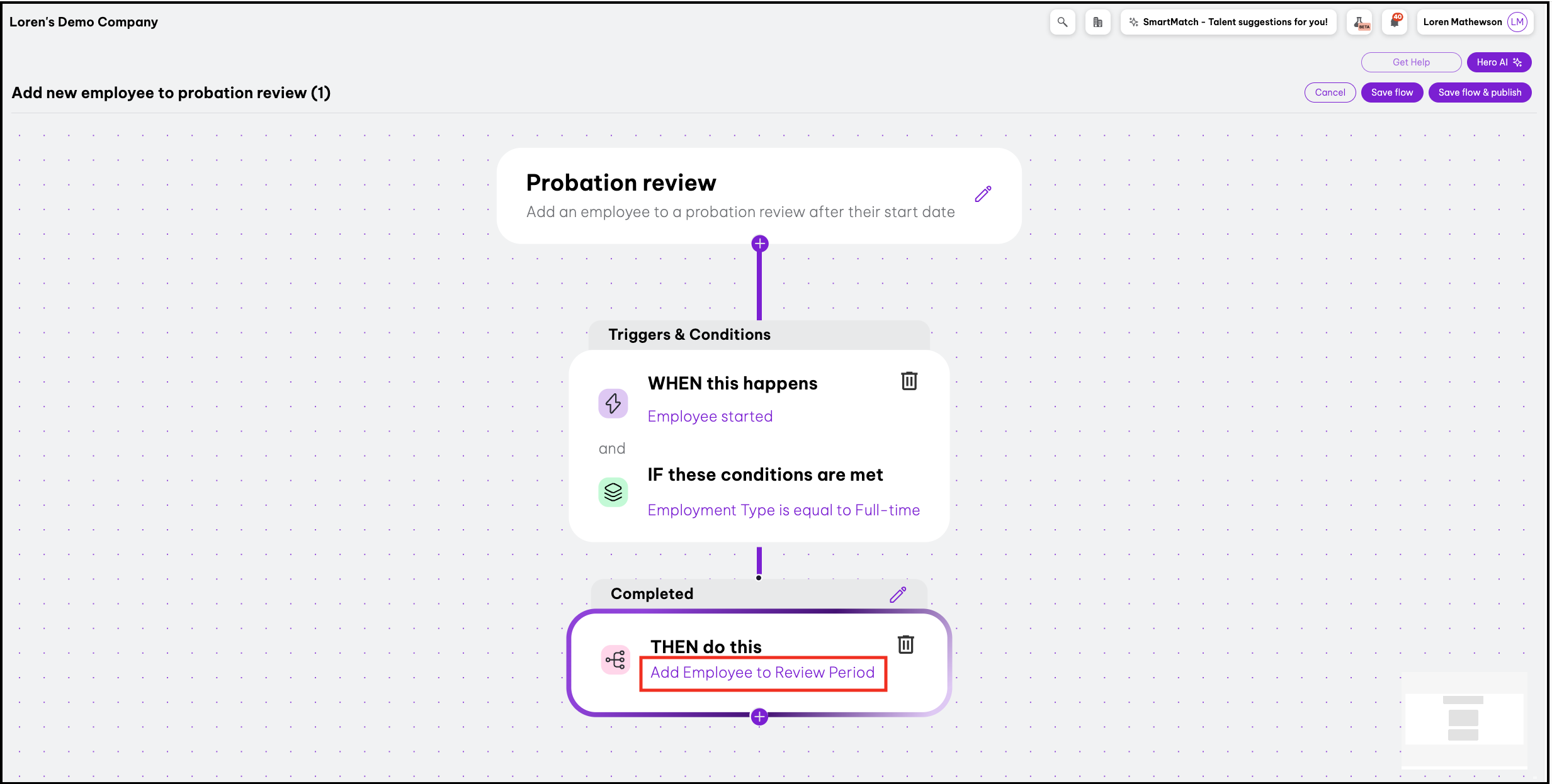 In addition, you can automate notifications for incomplete performance reviews, ensuring that any overdue tasks are promptly flagged. Finally, you can automate the process for probation reviews by sending reminders to employees, managers, or other participants when a review is approaching or requires completion.
