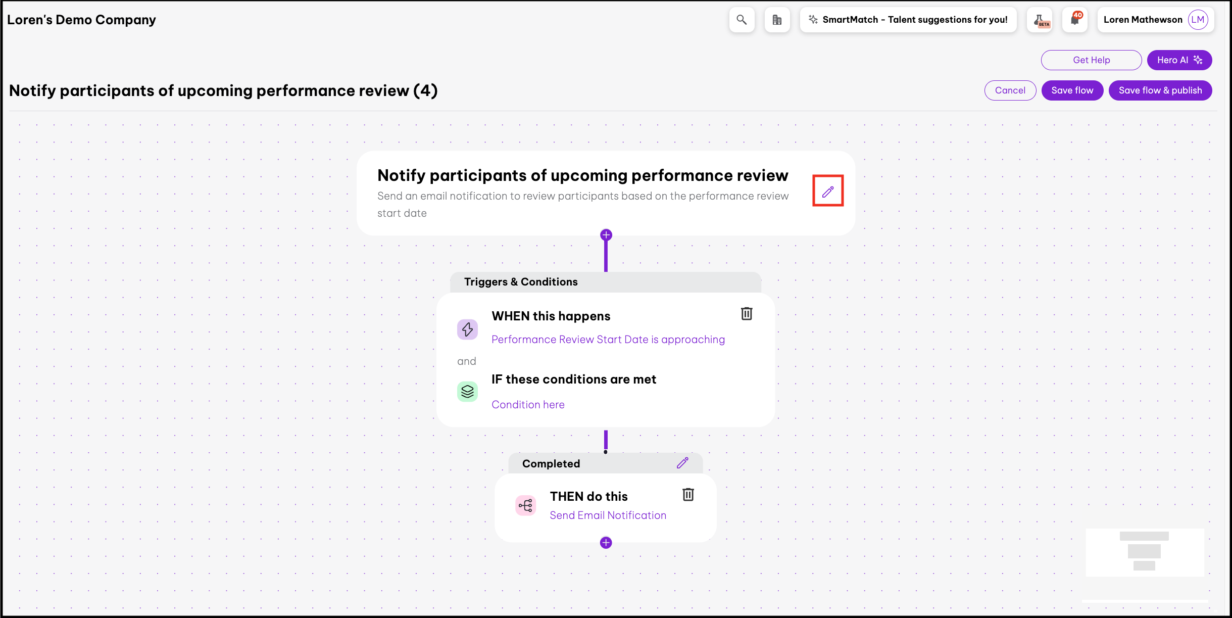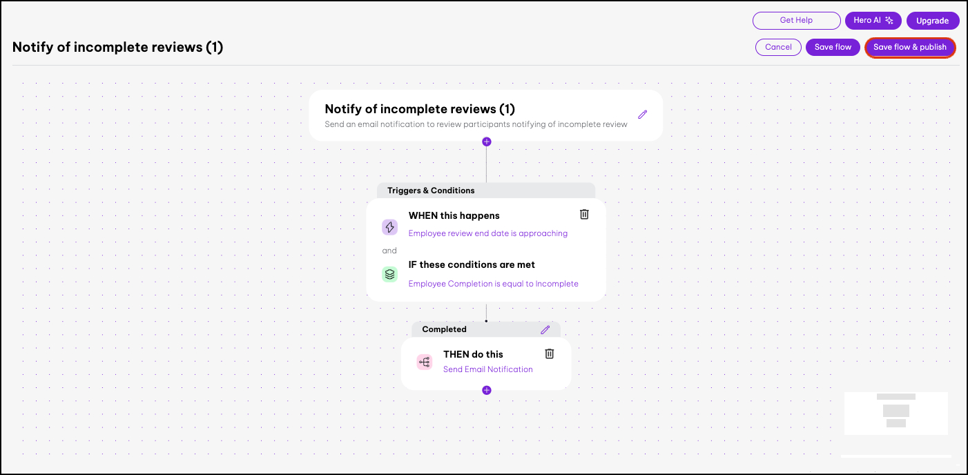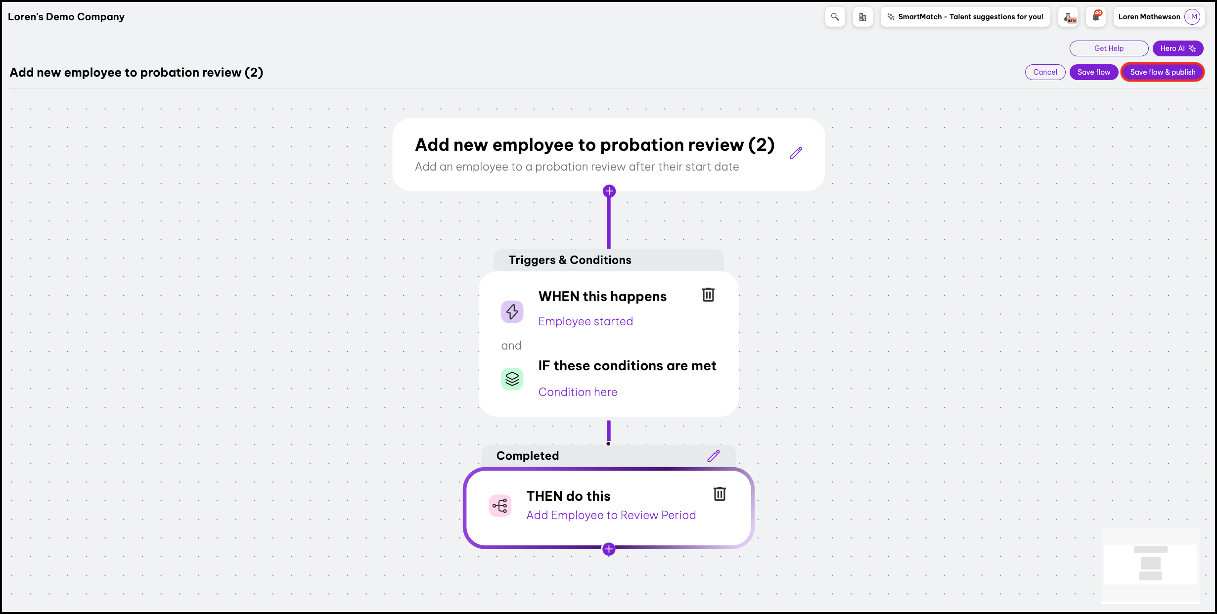 - If you are ready to activate this Workflow, click on Save flow and publish.