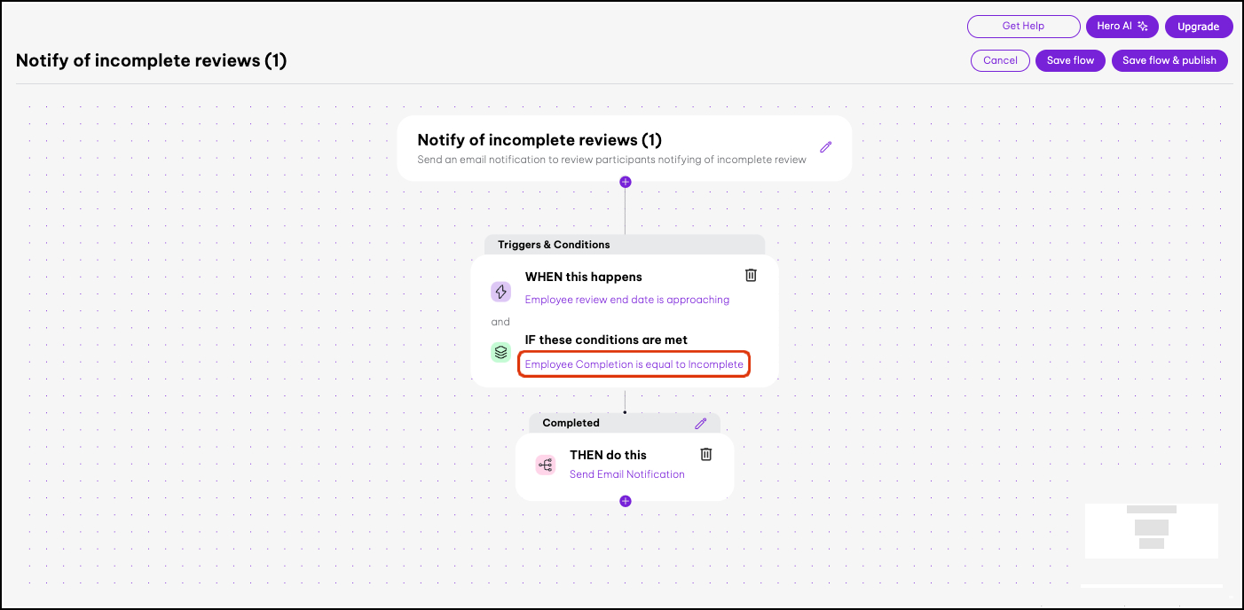 - Next you will set the conditions. Click on Employee Completion is equal to incomplete.