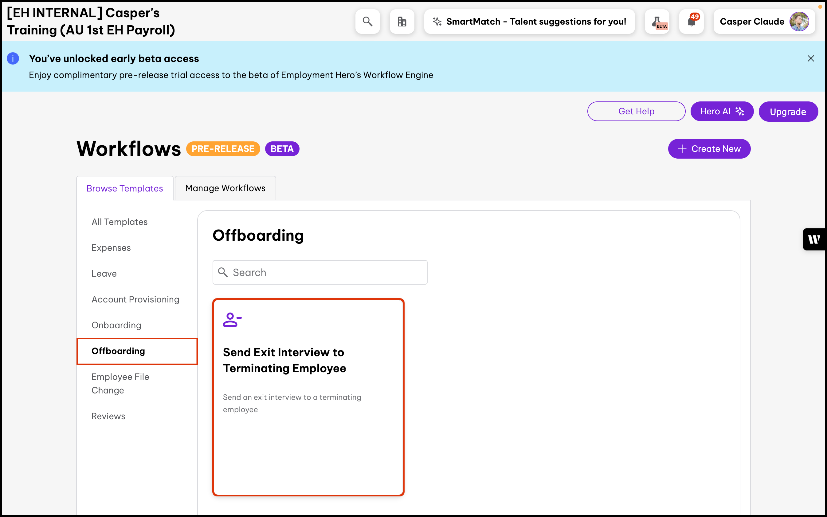 - Select the required Offboarding template.