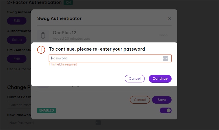- To confirm the removal, enter your password, then select Continue.