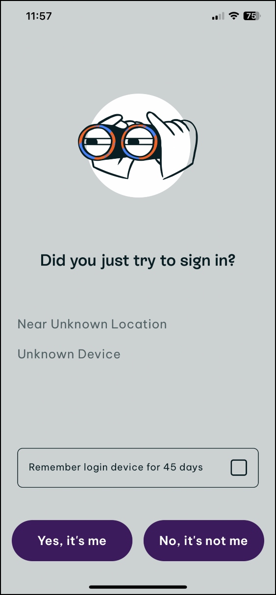 - Select the push notification on your device, and select Yes it's me.