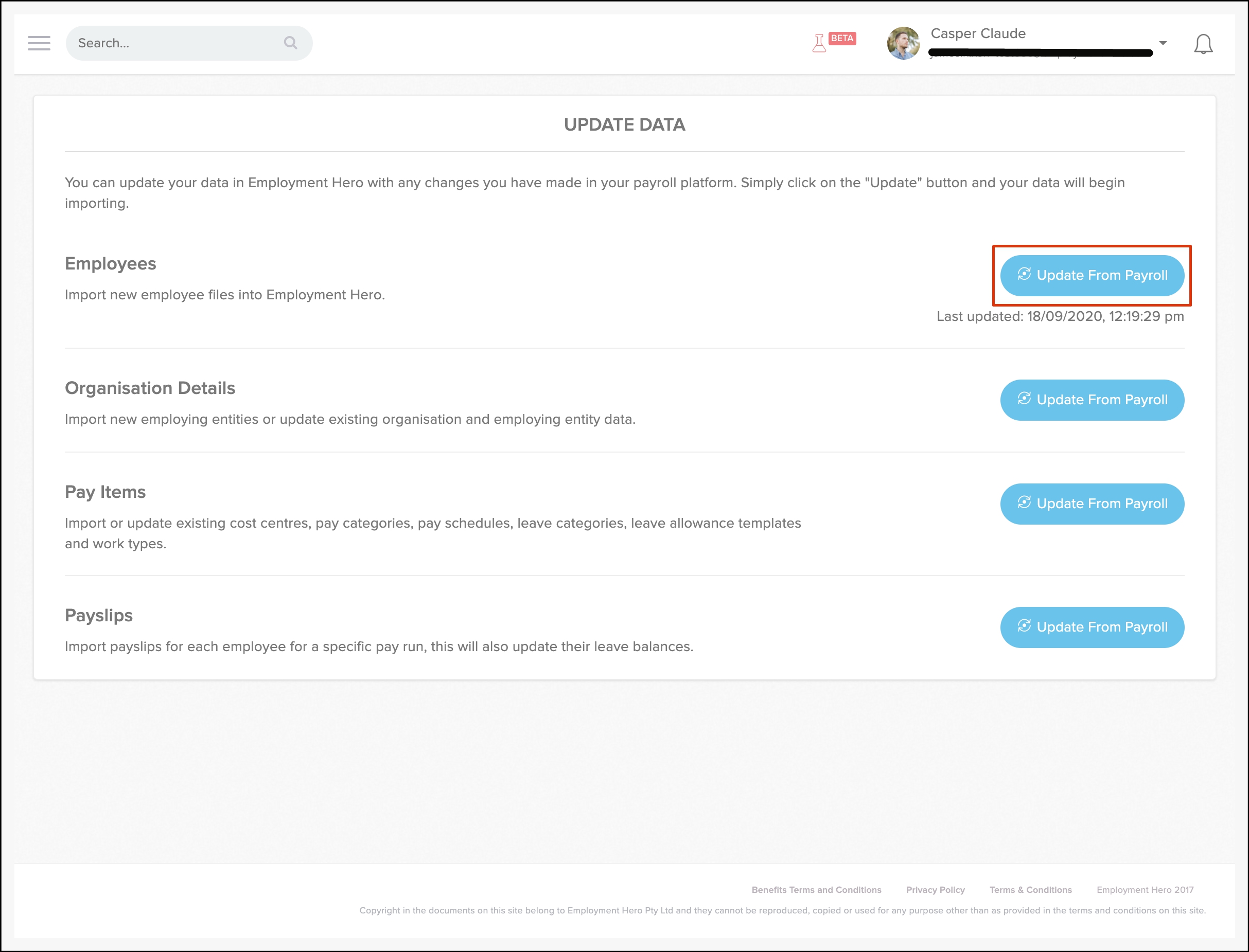 If you opt to use your Employment Hero Payroll classic employee data, then it will overwrite the data stored within Employment Hero. The same logic applies if you choose Employment Hero data over the information stored within your payroll classic platform.