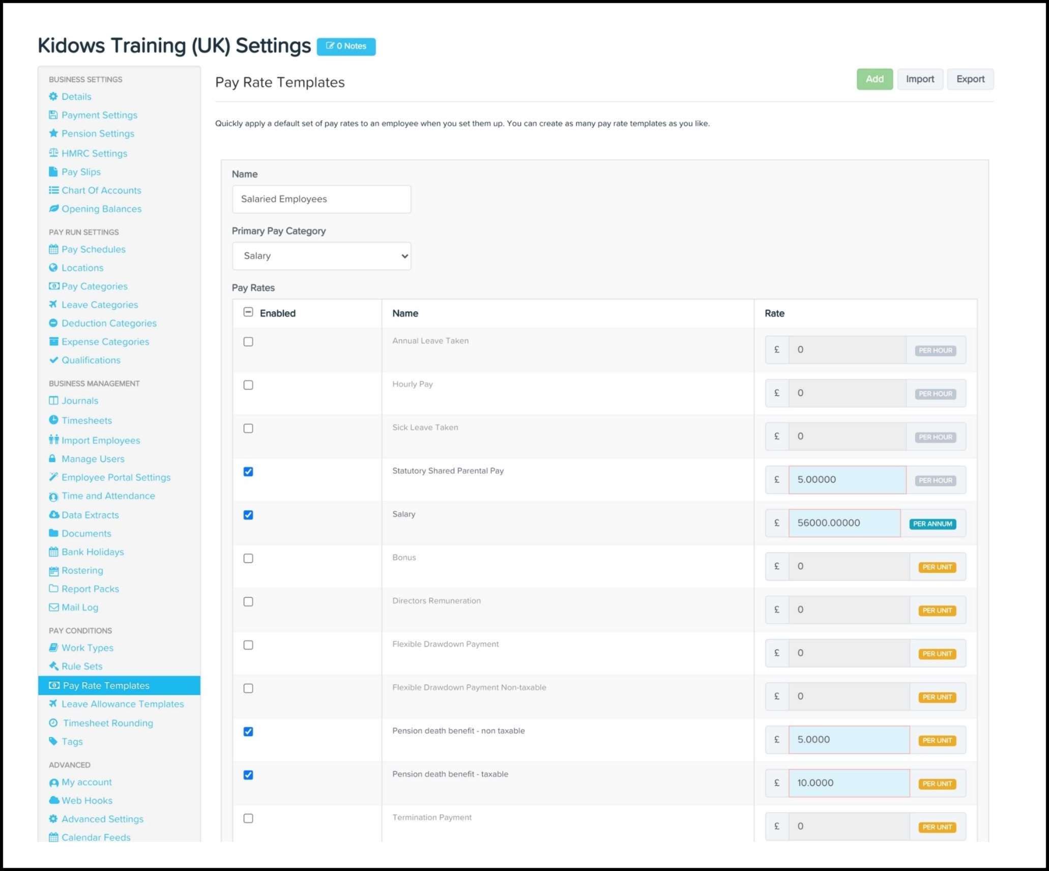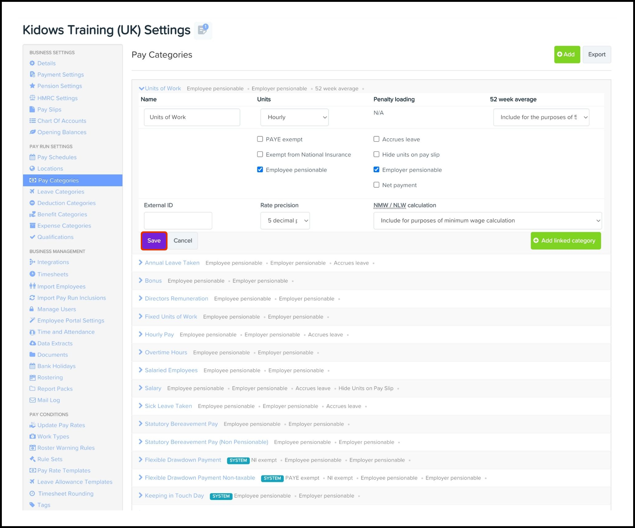 You can click the Add Linked Category button to link pay categories together. When linking a pay category to a base pay category, you only need to specify the base rate for the employee and it will automatically calculate the rate for the linked pay categories.