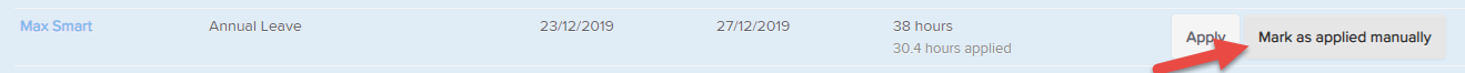 - When you apply the leave from the leave request tab you can select to enter only 30.4 hours. However, the system will still be waiting for the other 7.6 hours to be applied, and as such the leave request will keep coming into each pay run. You can get rid of this prompt by selecting the ‘mark as manually applied’ option.
