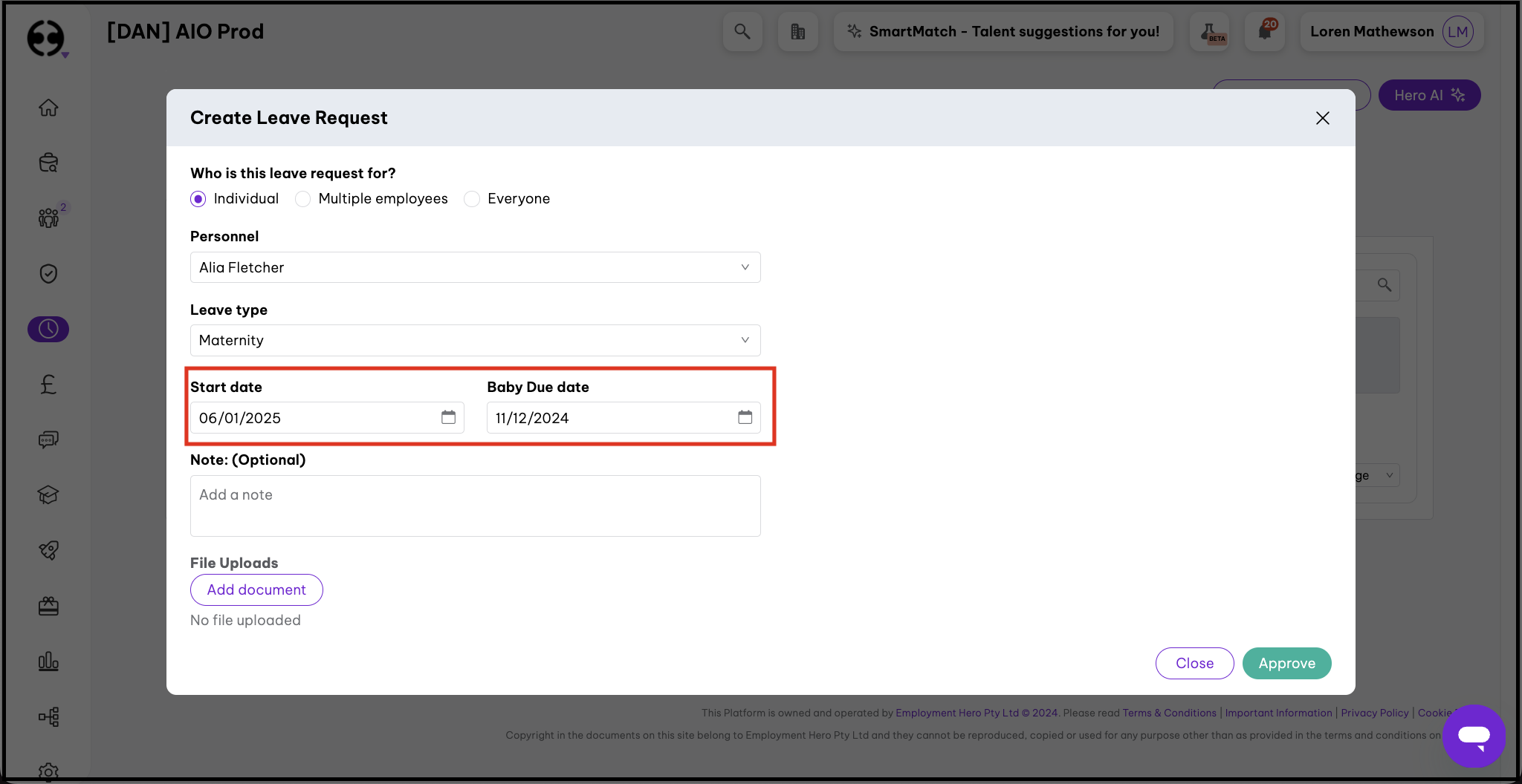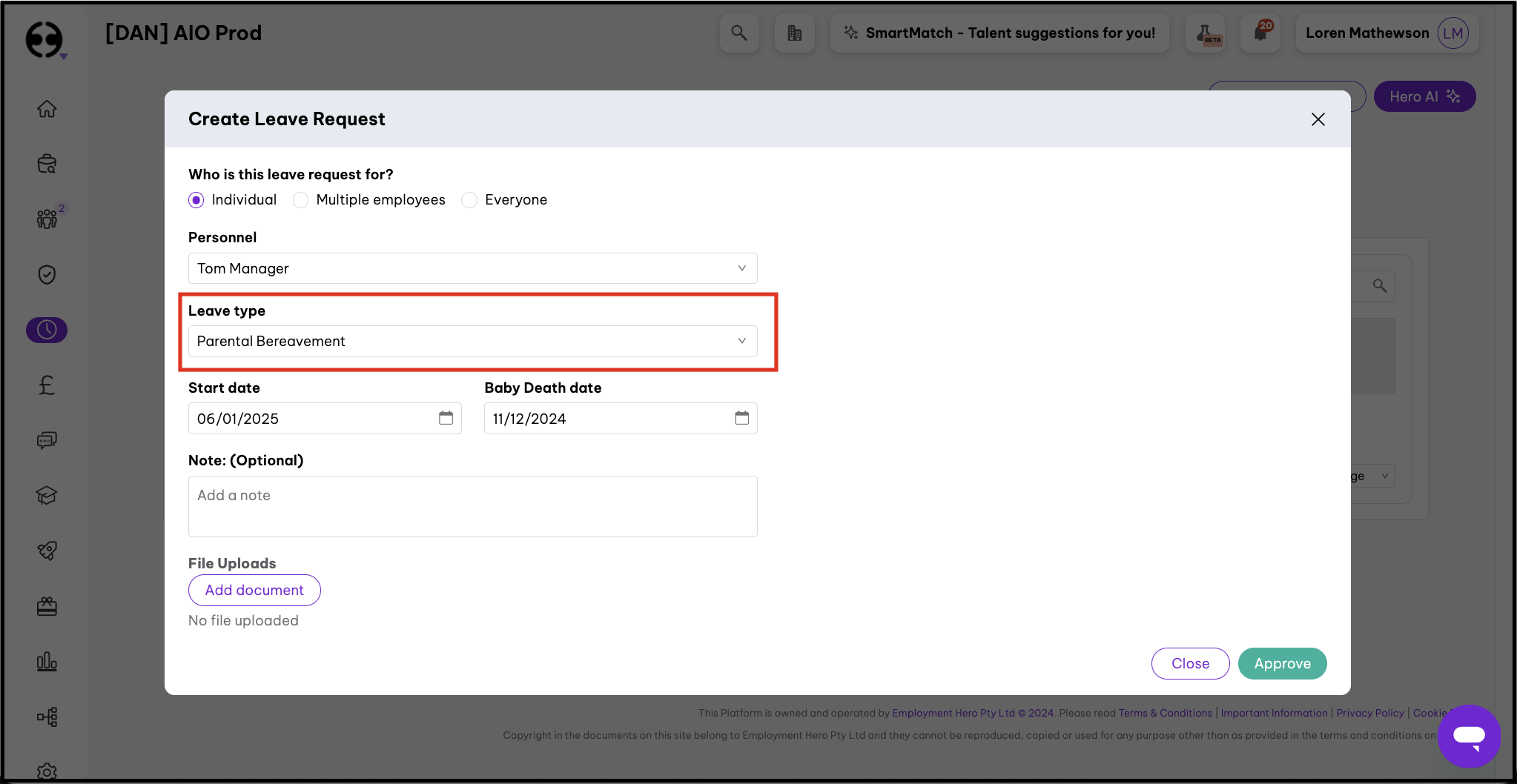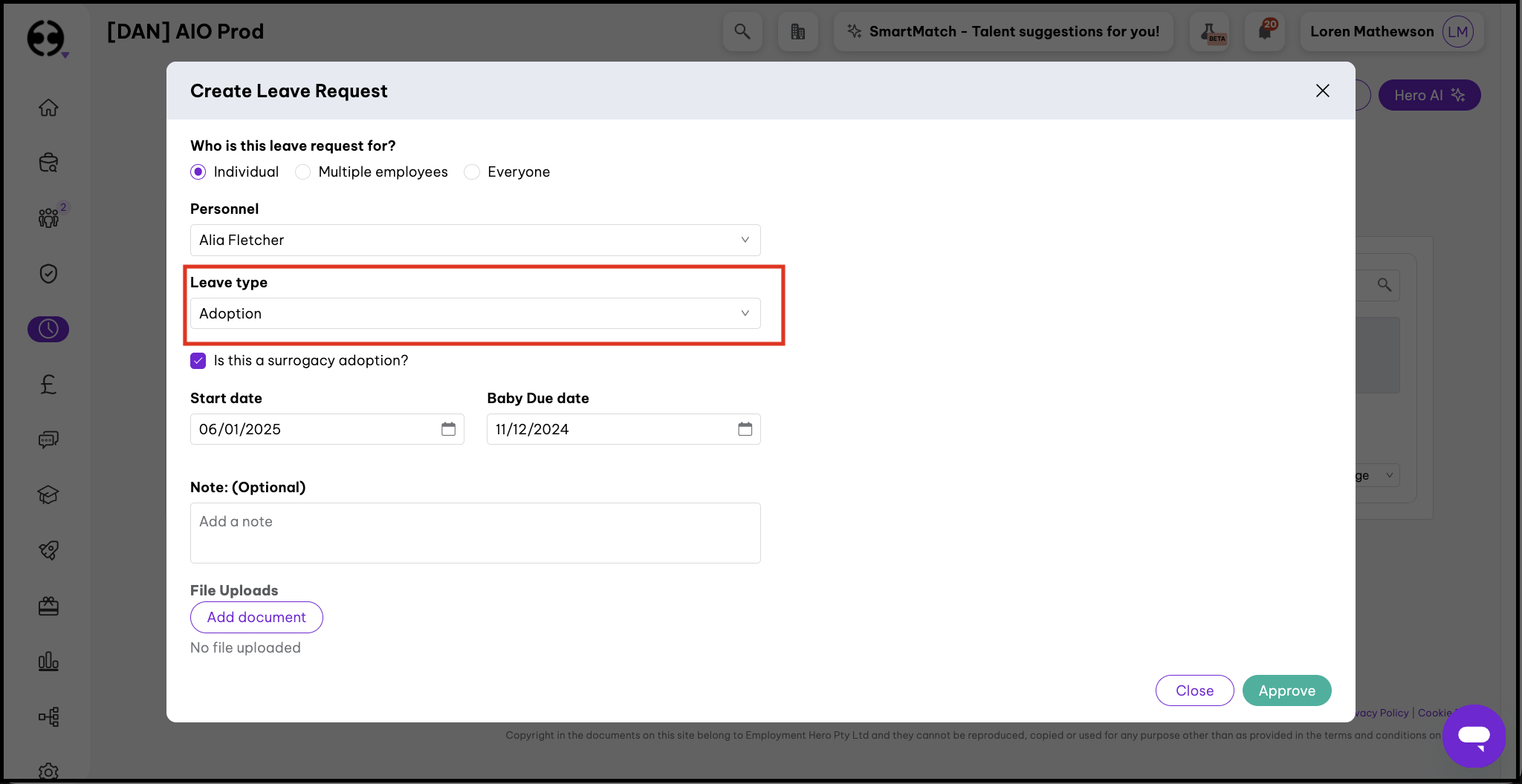 To streamline this process, Employment Hero automatically provides statutory leave types, aligning requests with payroll requirements. Employees can submit requests through a dedicated form, ensuring compliance with relevant regulations and reducing manual administrative work for HR teams. This helps businesses manage employee leave efficiently while ensuring accurate payroll processing.
