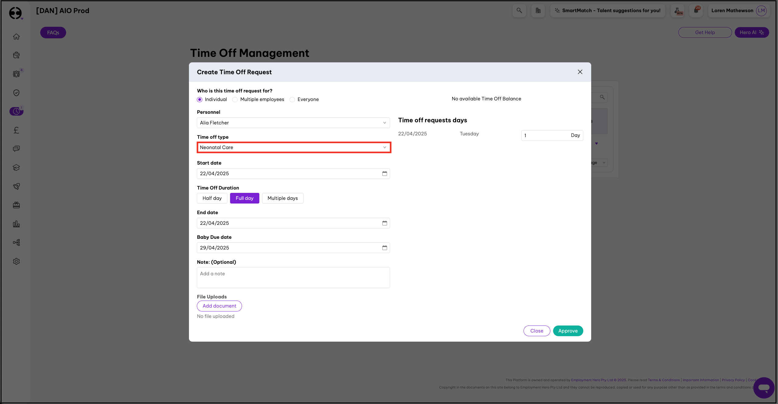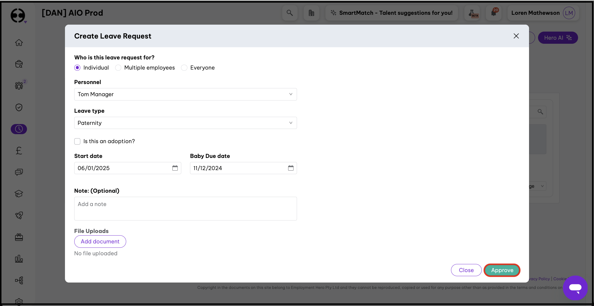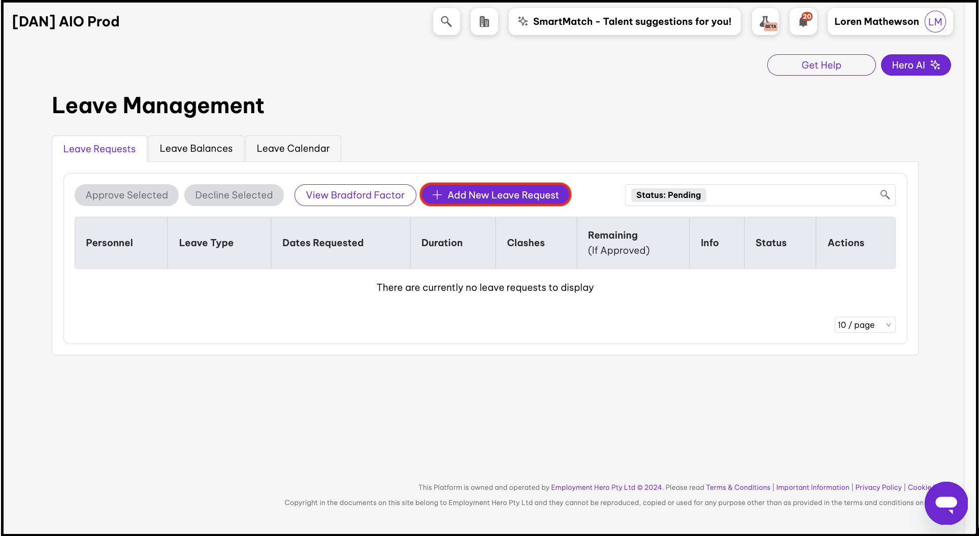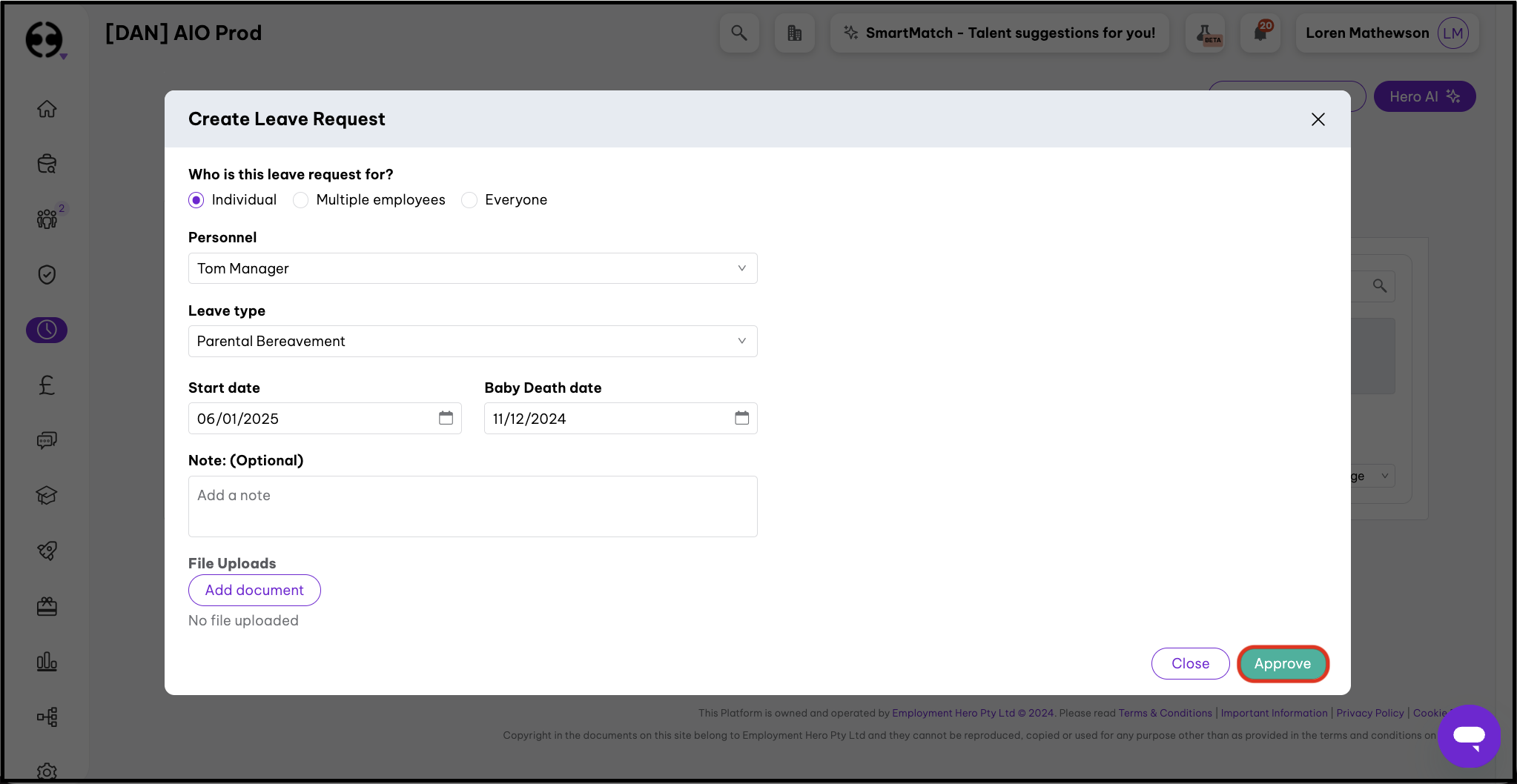 To streamline this process, Employment Hero automatically provides statutory leave types, aligning requests with payroll requirements. Employees can submit requests through a dedicated form, ensuring compliance with relevant regulations and reducing manual administrative work for HR teams. This helps businesses manage employee leave efficiently while ensuring accurate payroll processing.