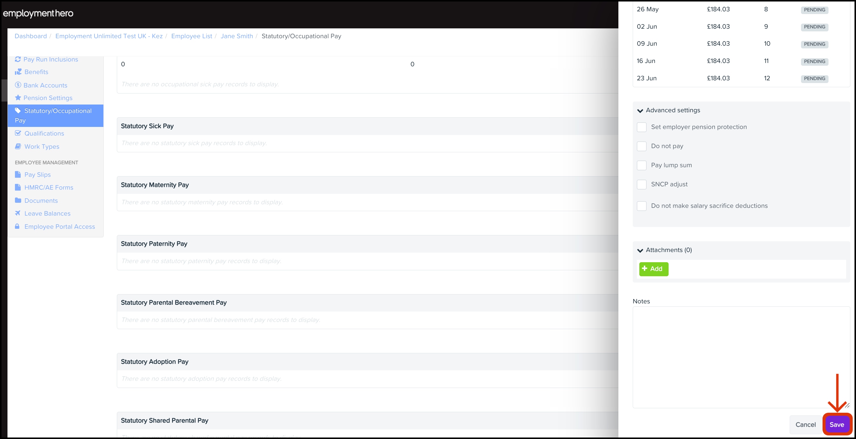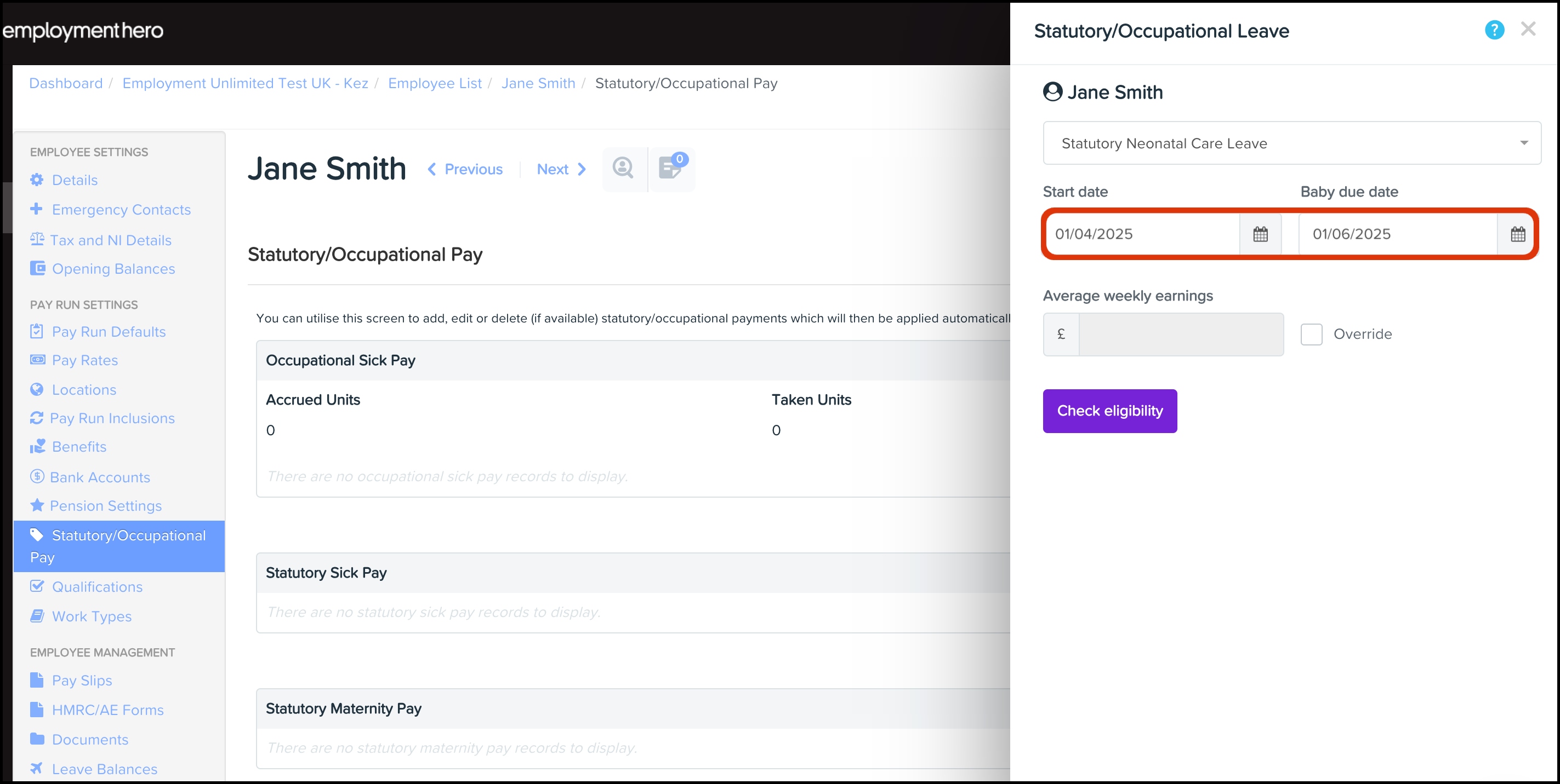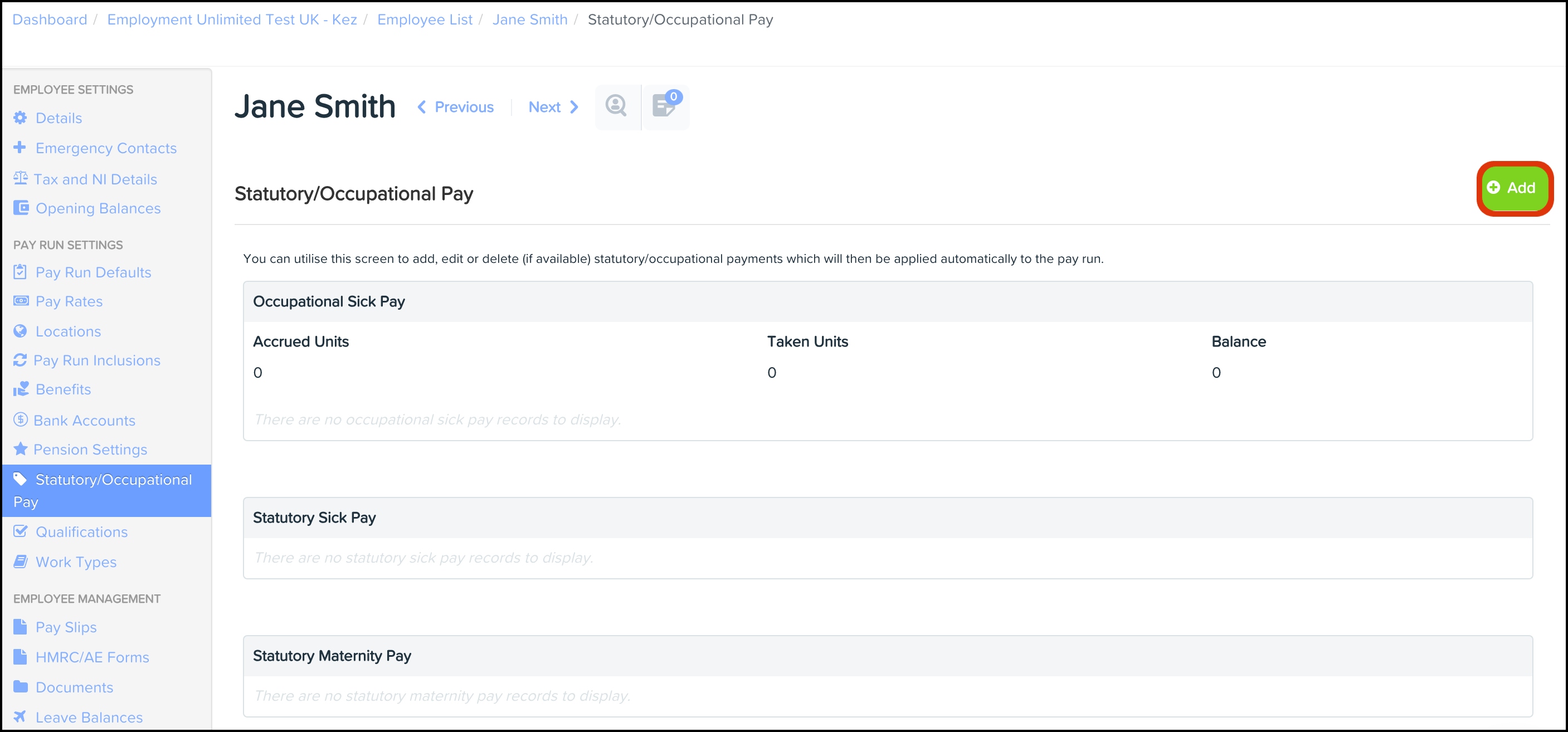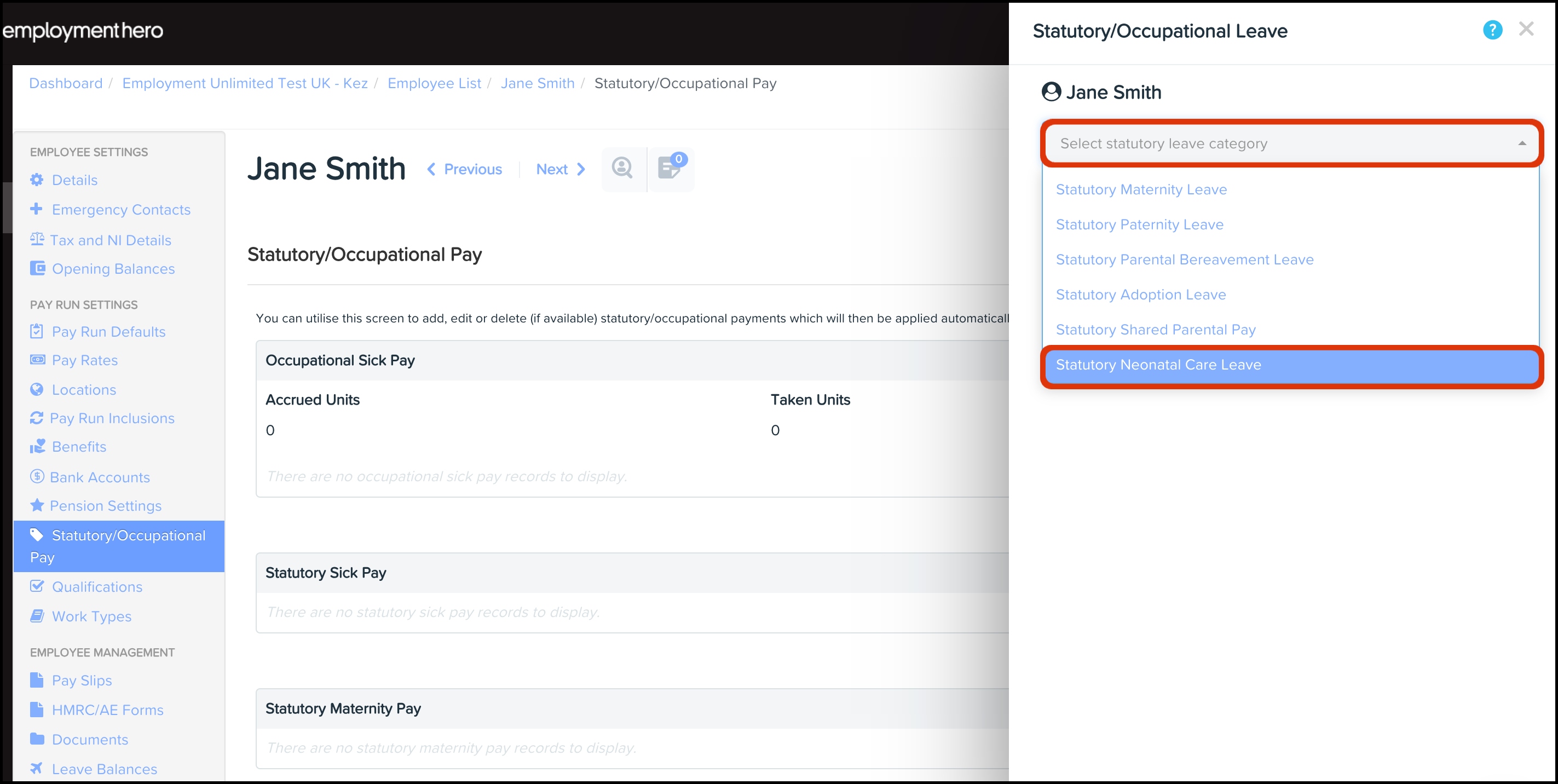 - On the grey menu, click Statutory/Occupational Pay.