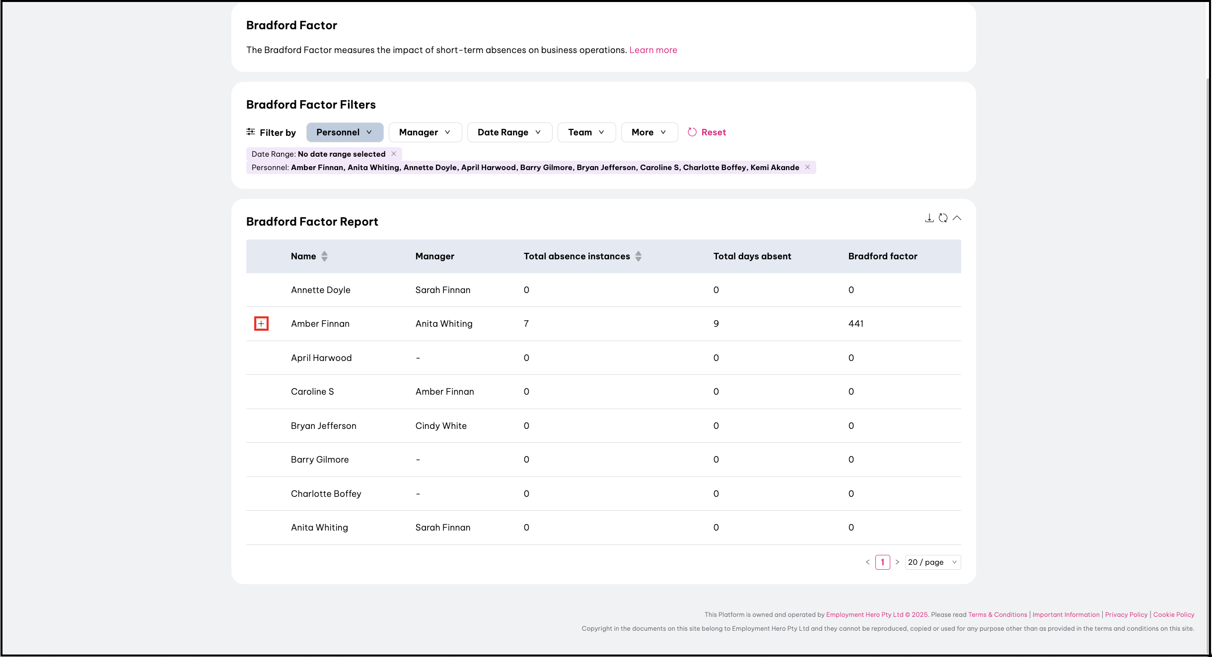 - Click on the + button next to the employee you wish to make changes for and expand their time off details.