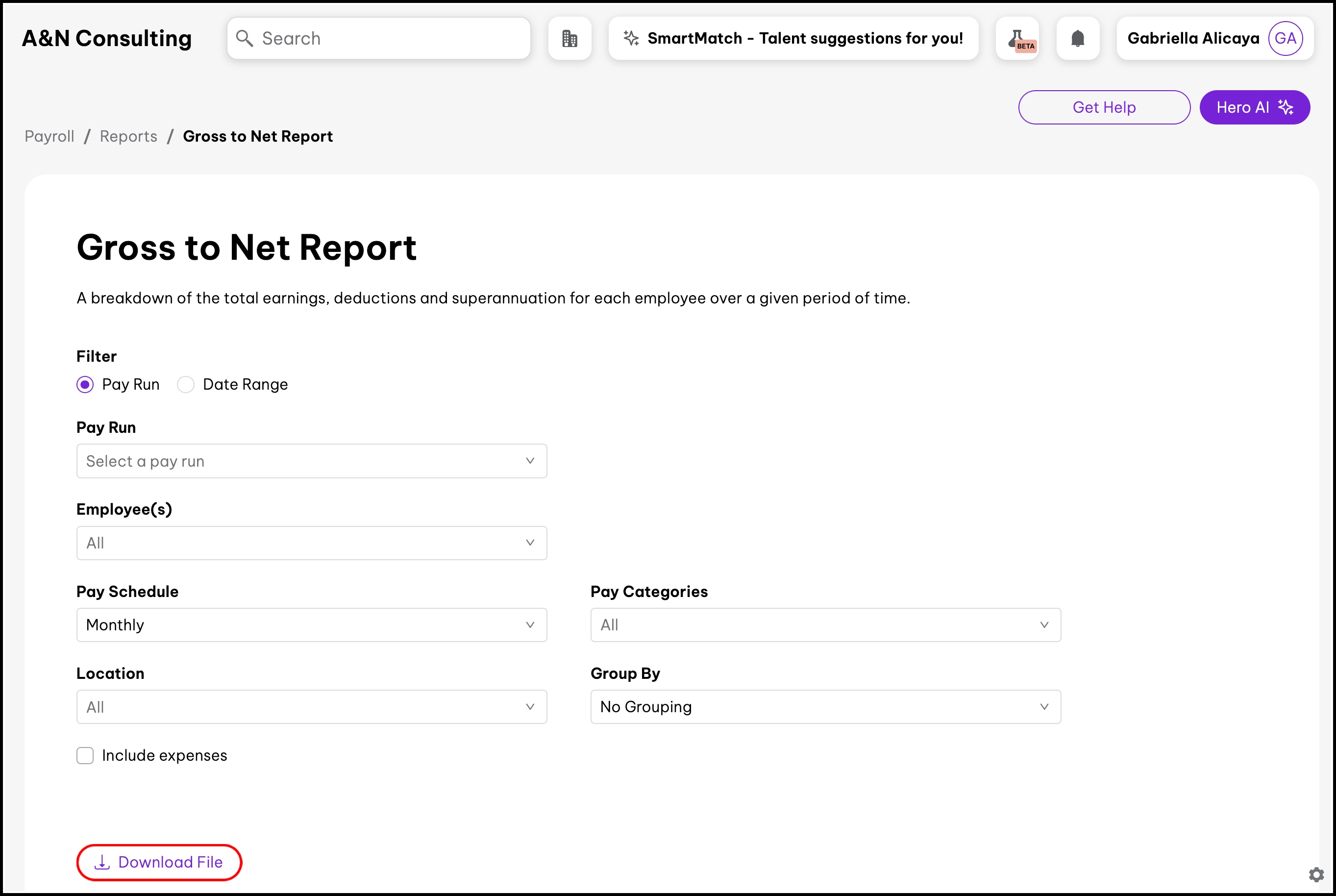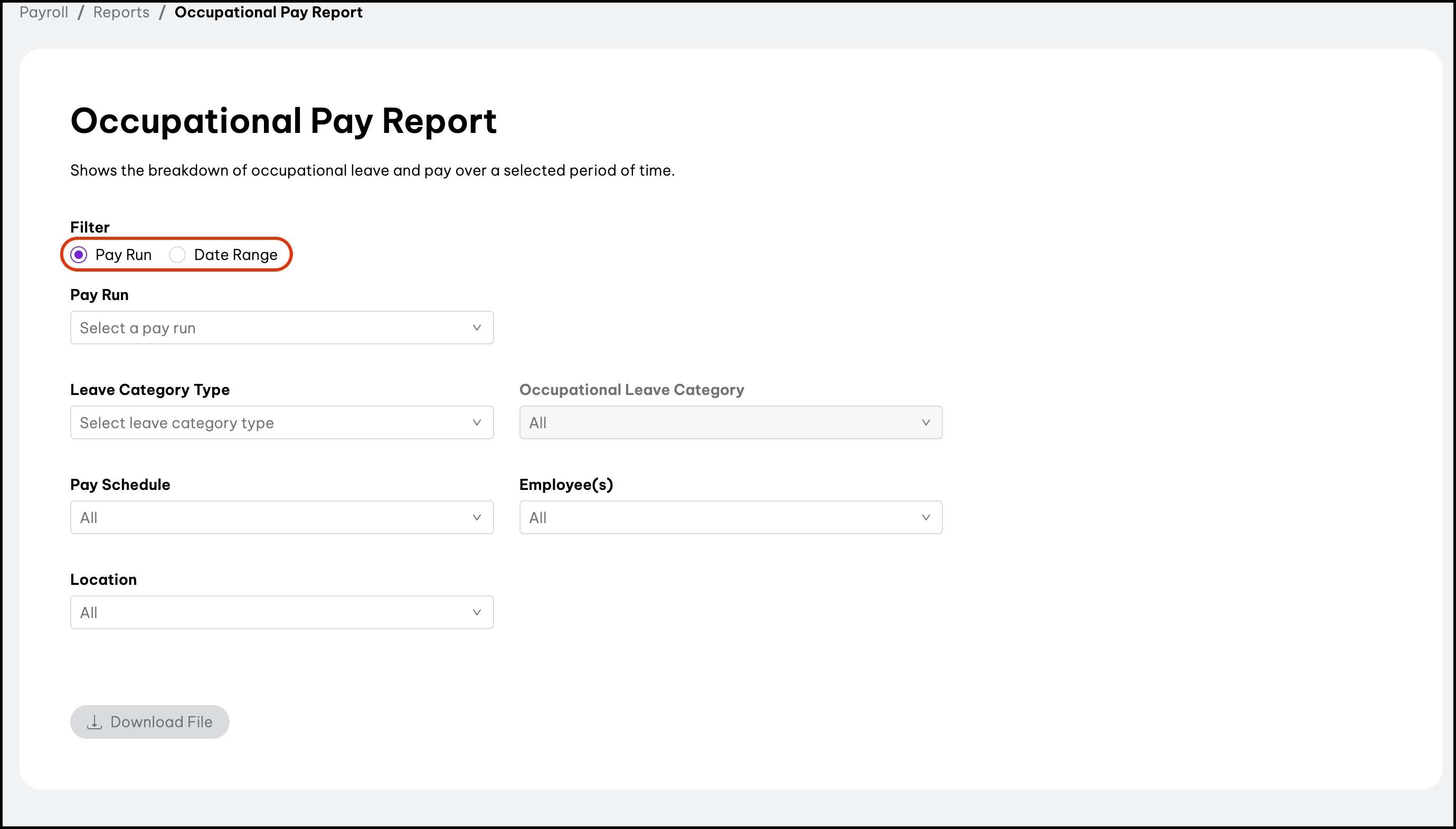 - Filter by Pay Run or Date Range.