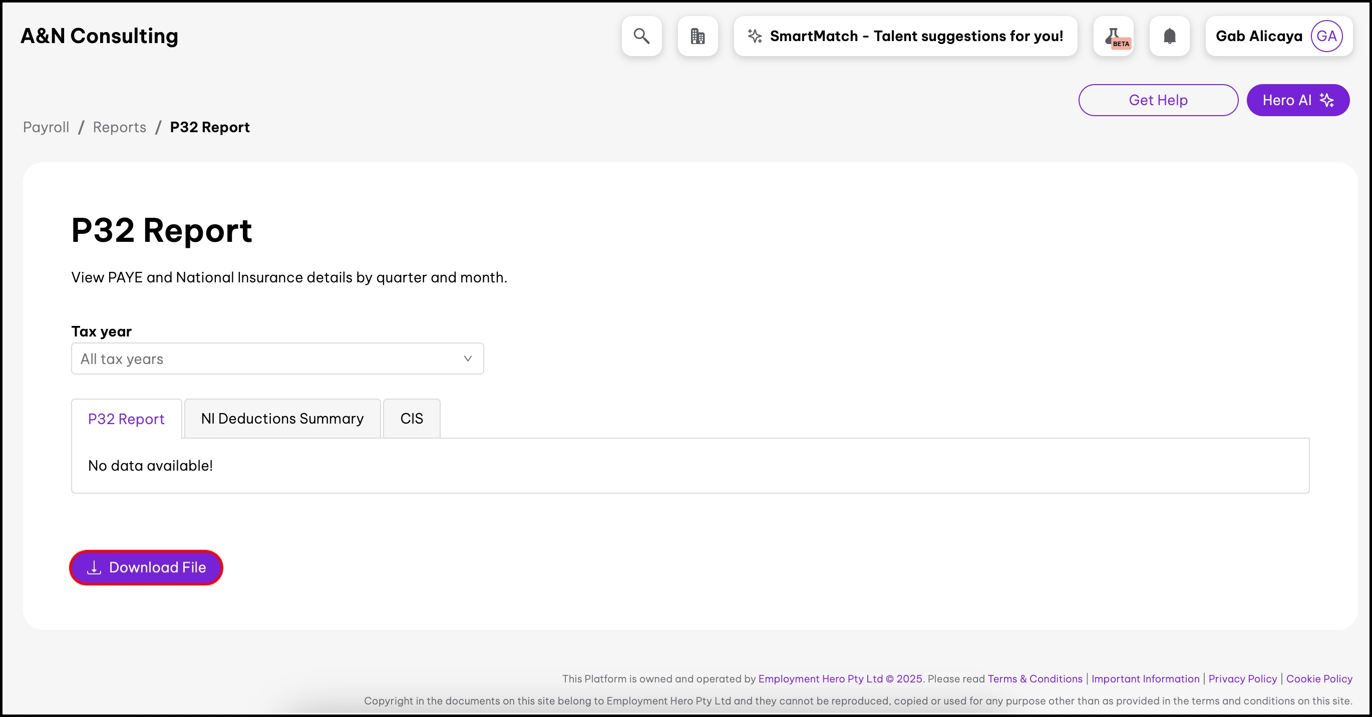 The P32 Report lets you see PAYE and National Insurance details by quarter and month.