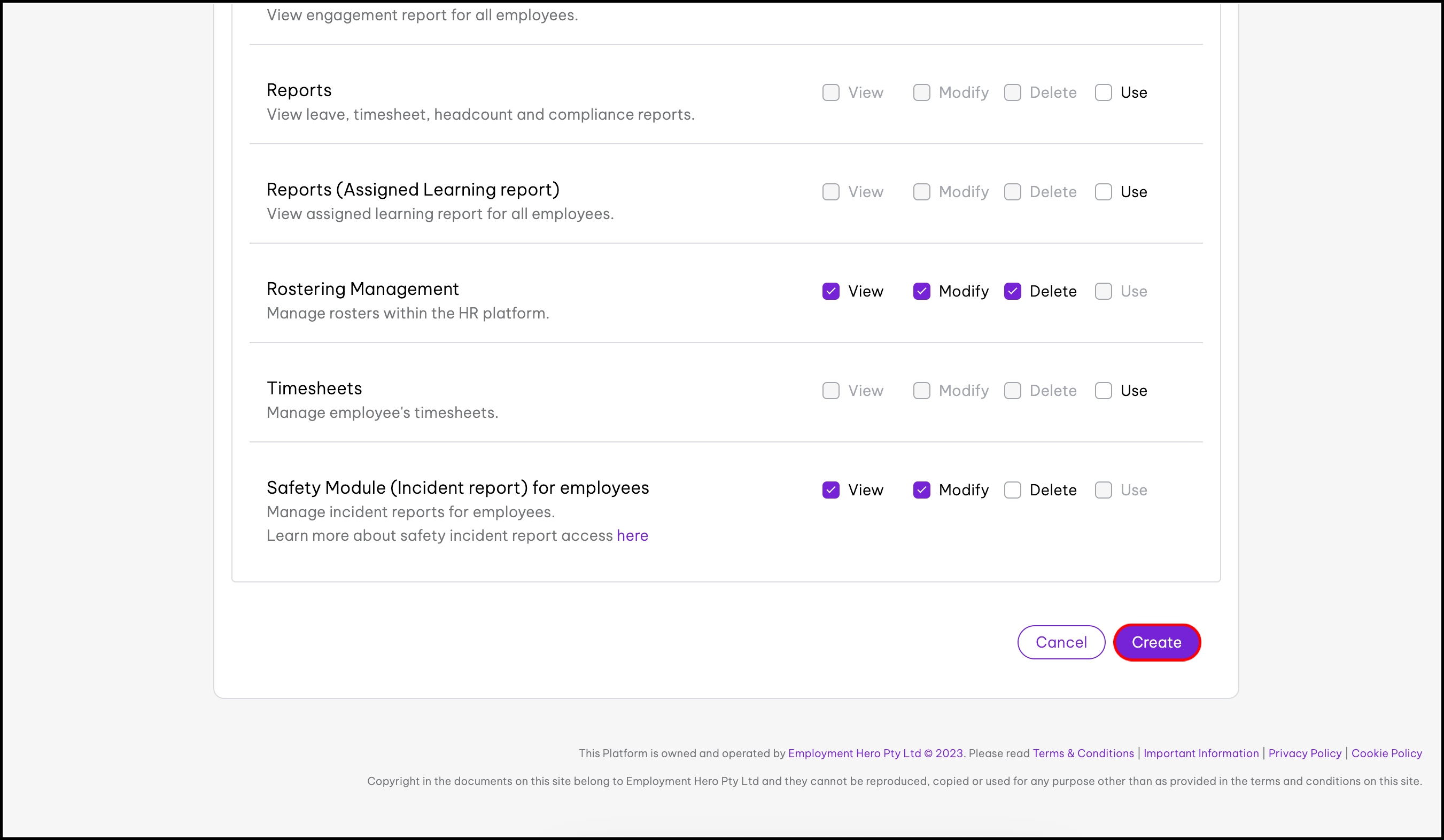 - Partial permissions: When you have only selected some actions for a module (e.g., only viewing employee files but not modifying them)