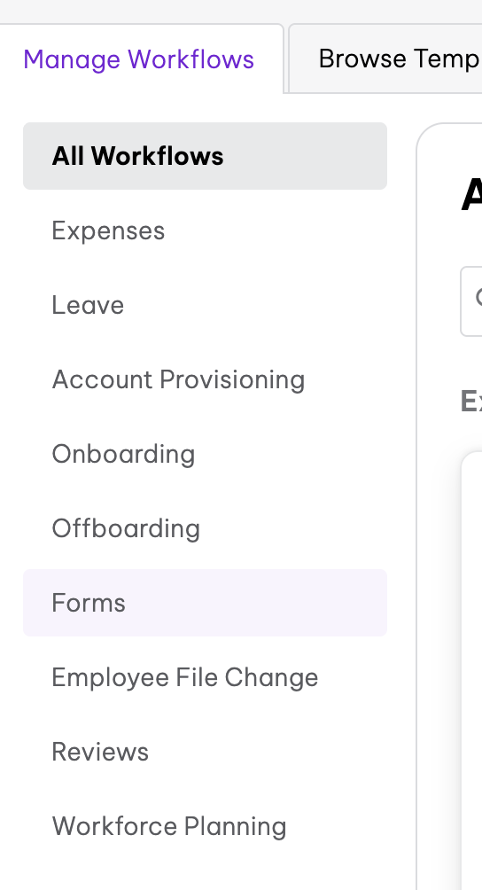 In the Workflows menu, create or edit a Forms workflow.