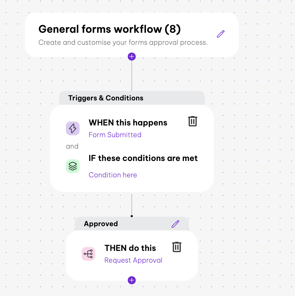 - Configure my organisation's forms workflows: Learn the detailed steps required to set up and manage custom automation sequences for your organisation's forms.