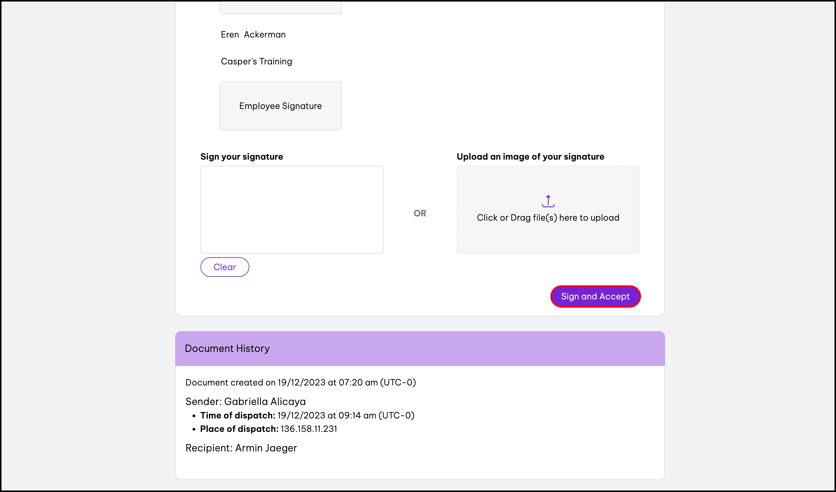Documents can be issued with a single signatory (manager) or dual signatories (employee and manager), depending on the document type. The built-in Authorising Signatory feature also allows organisations to pre-set authorised signatures, streamlining the signing process.