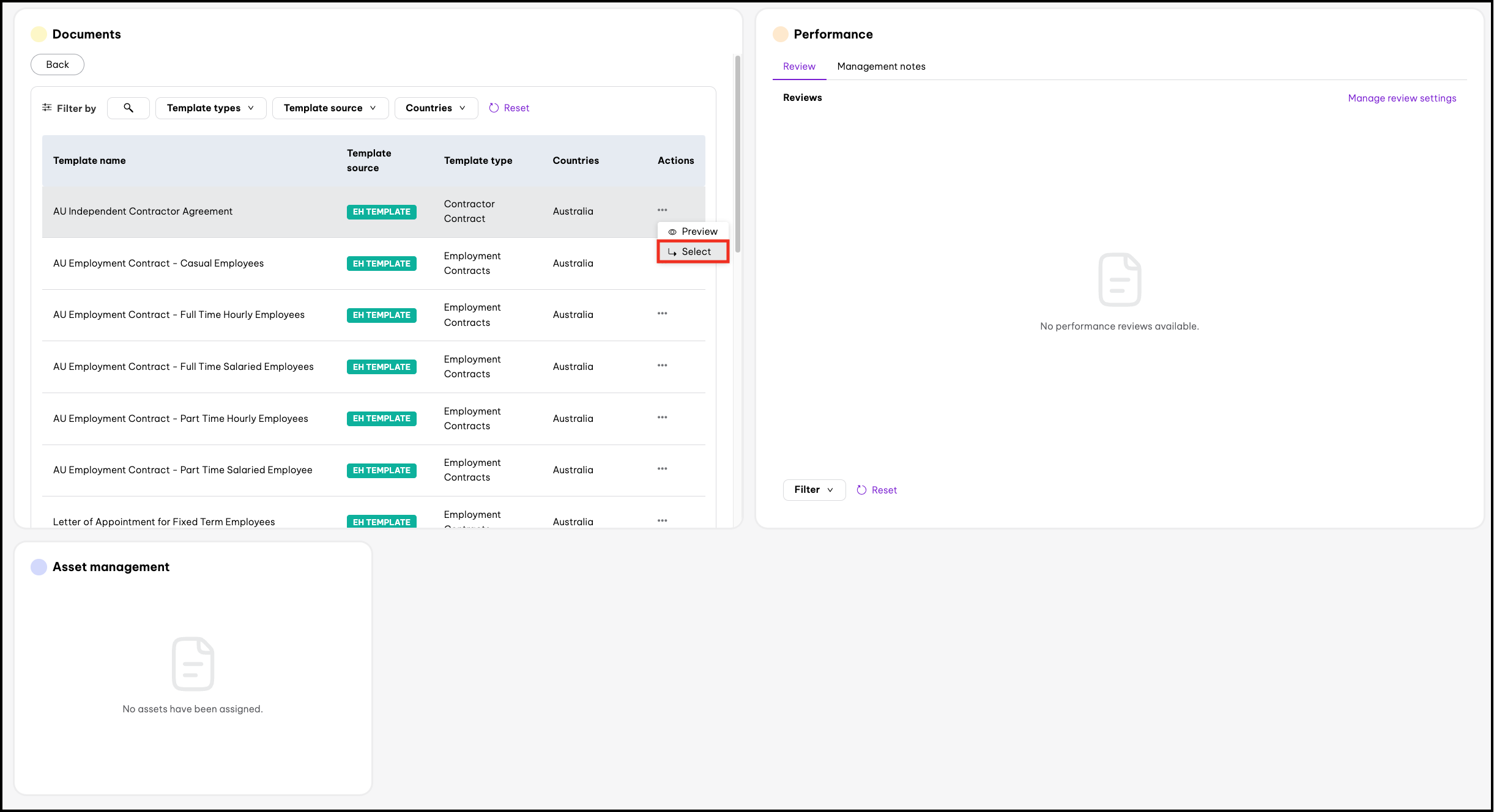 The Documents feature in Employment Hero allows employers to create, issue, and manage documents for employees, including contracts, HR policies, and compliance paperwork. This feature enables users to: