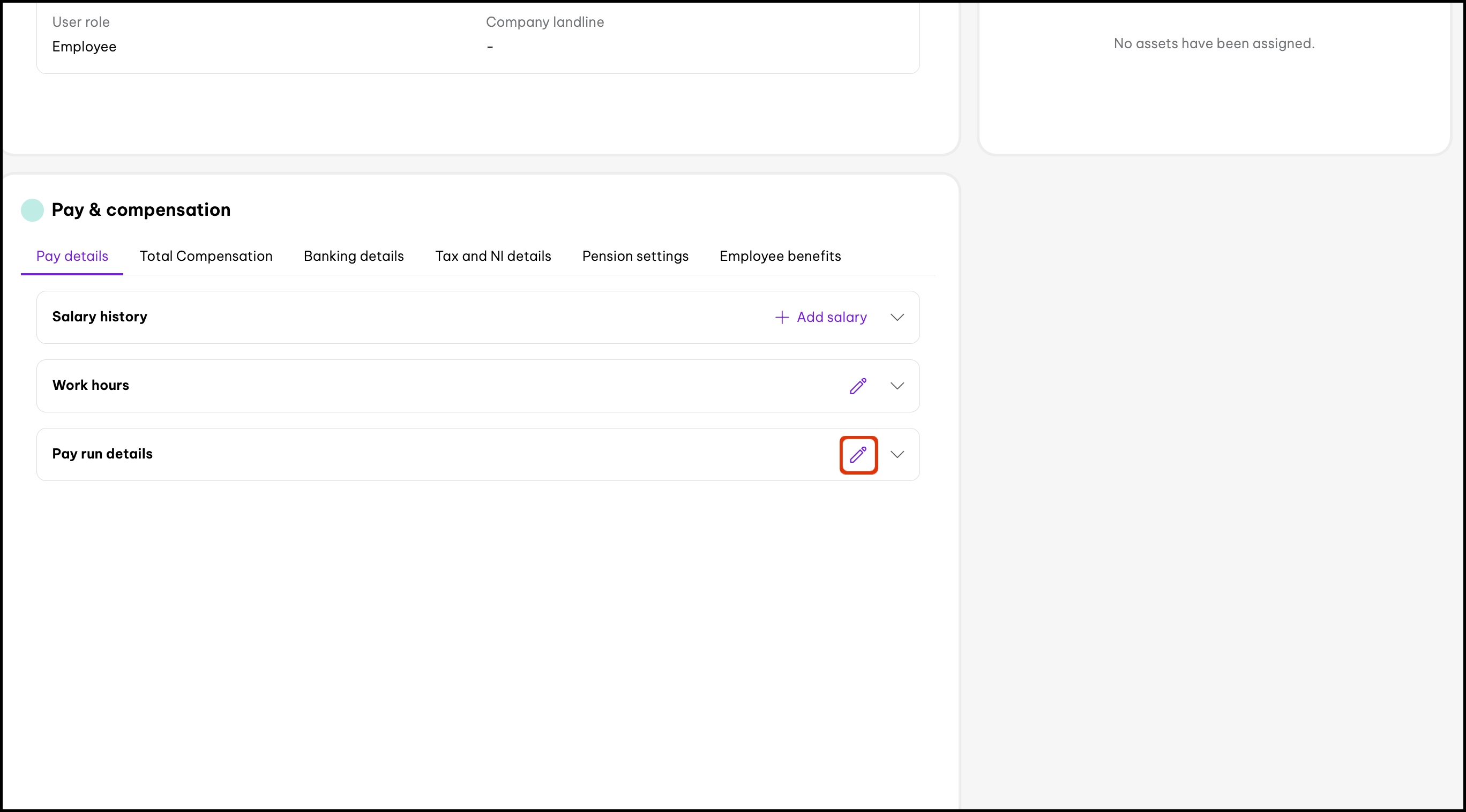 10. On the Pay run details panel, click the edit button (pencil icon).