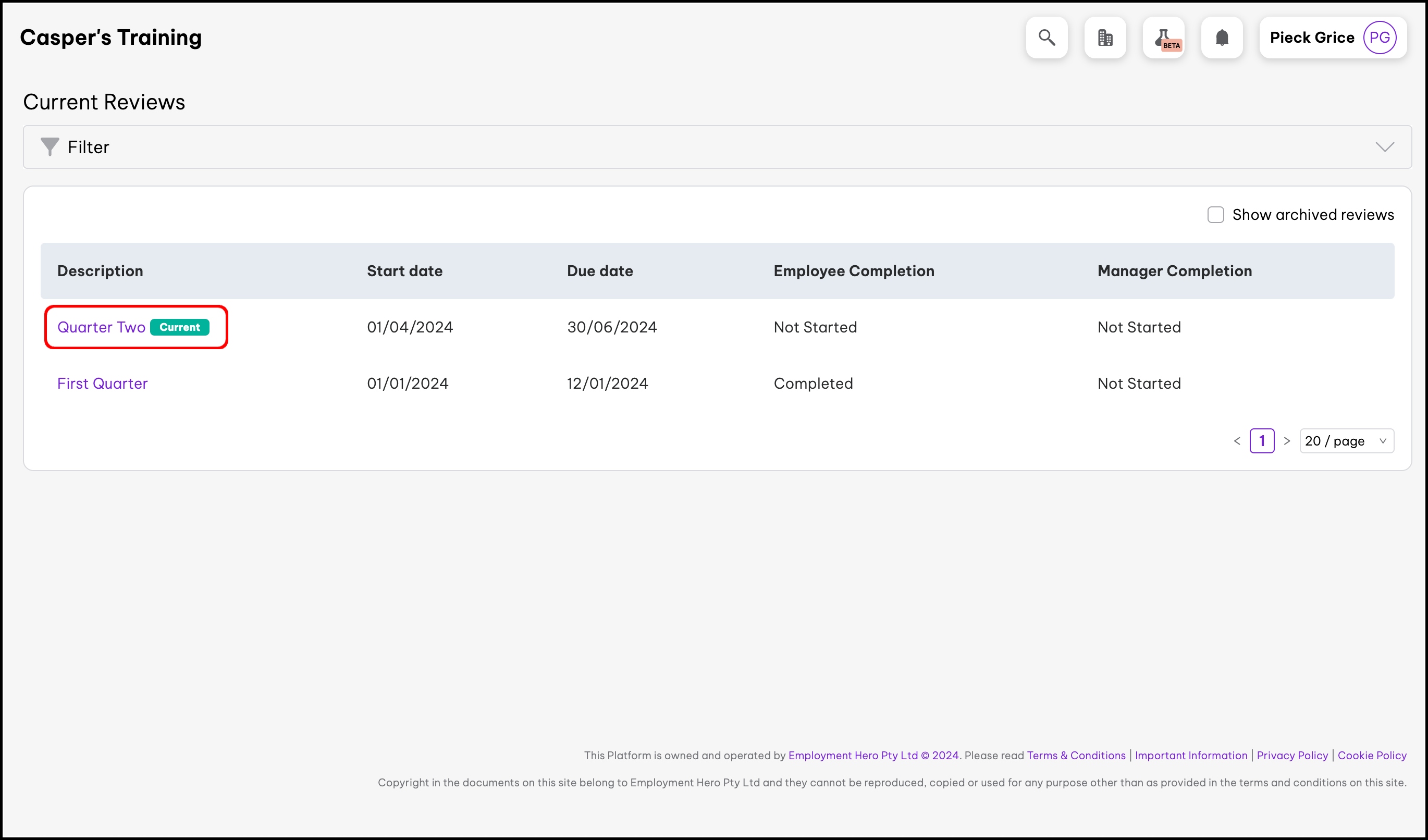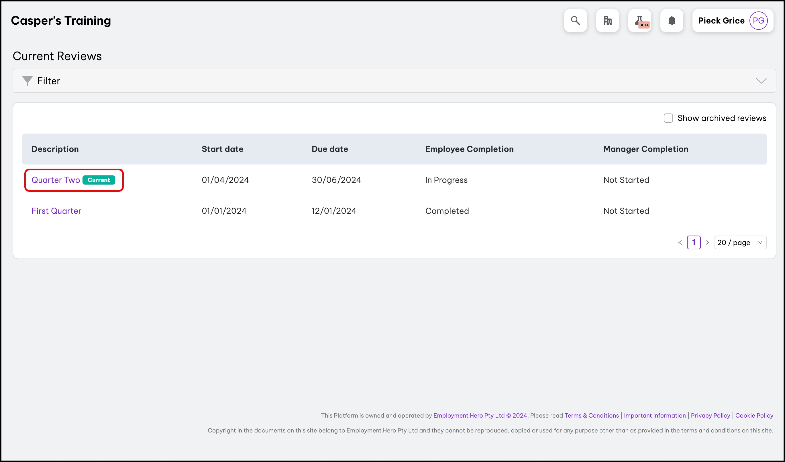 - Click the Performance Reviews submenu.