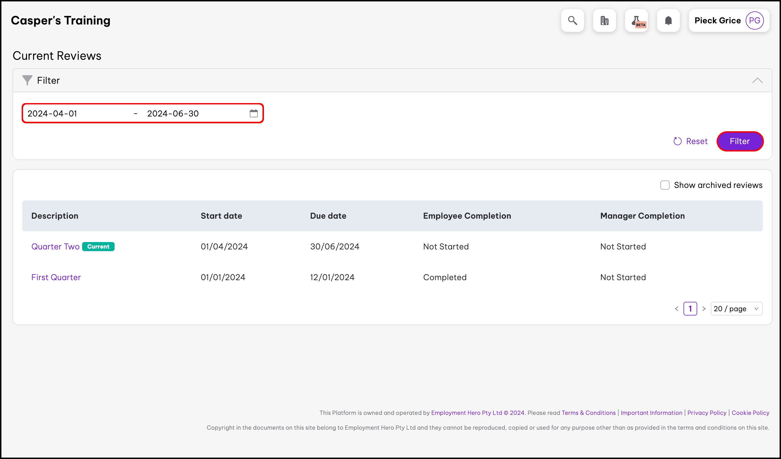 You can now see reviews that fall within the date range you set. If you would like to view all your reviews, click the Reset button, then click the Filter button.
