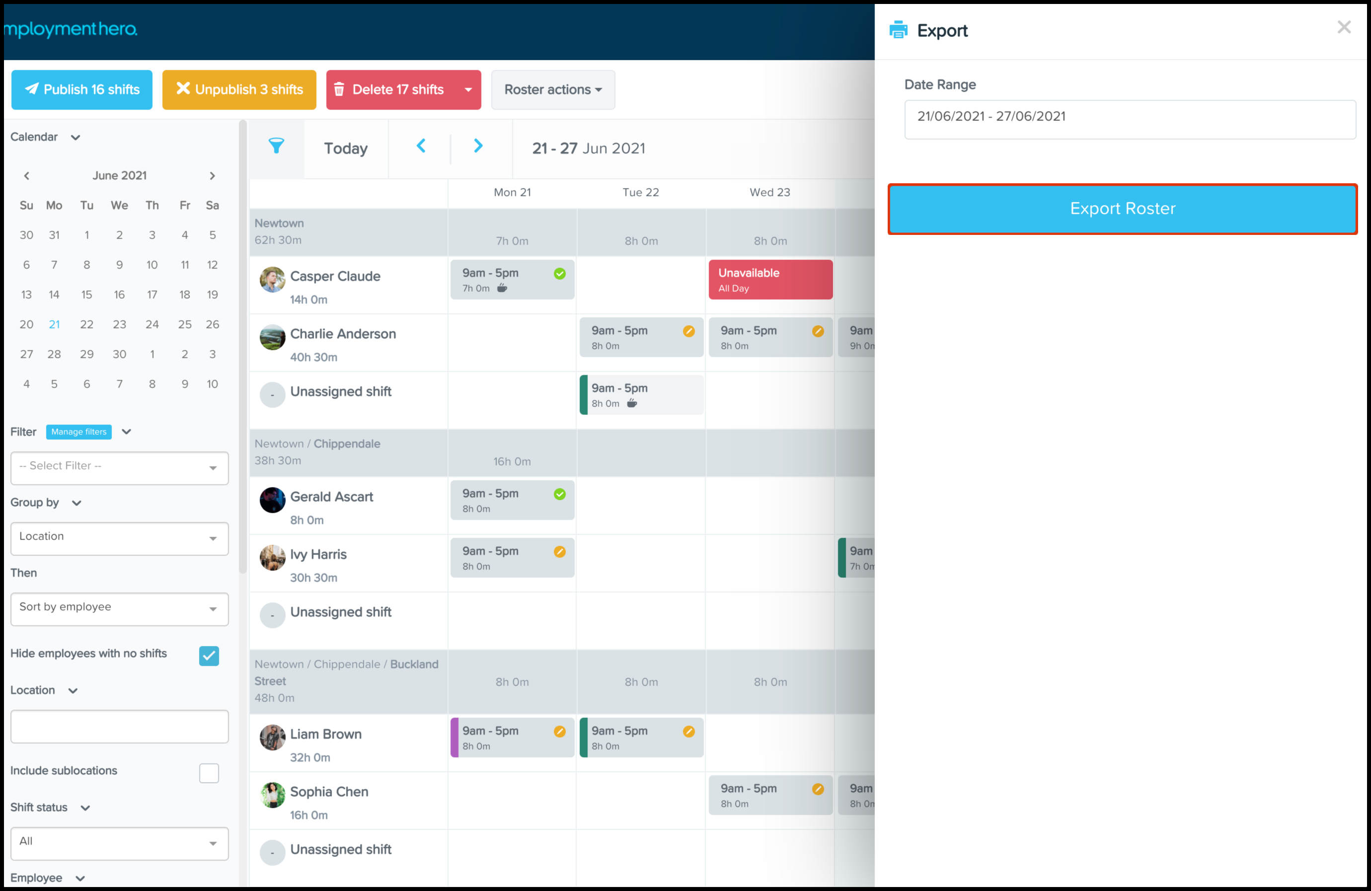 - Set the Hide Employee with No Shifts toggle switch to On or Off.