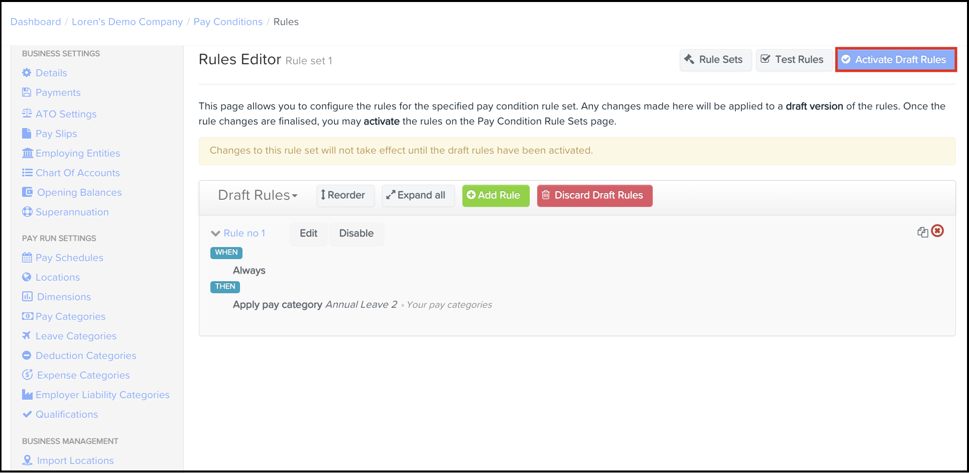 Once you have created a rule set, you need to assign it to the relevant employees. The steps on how to undertake this are: