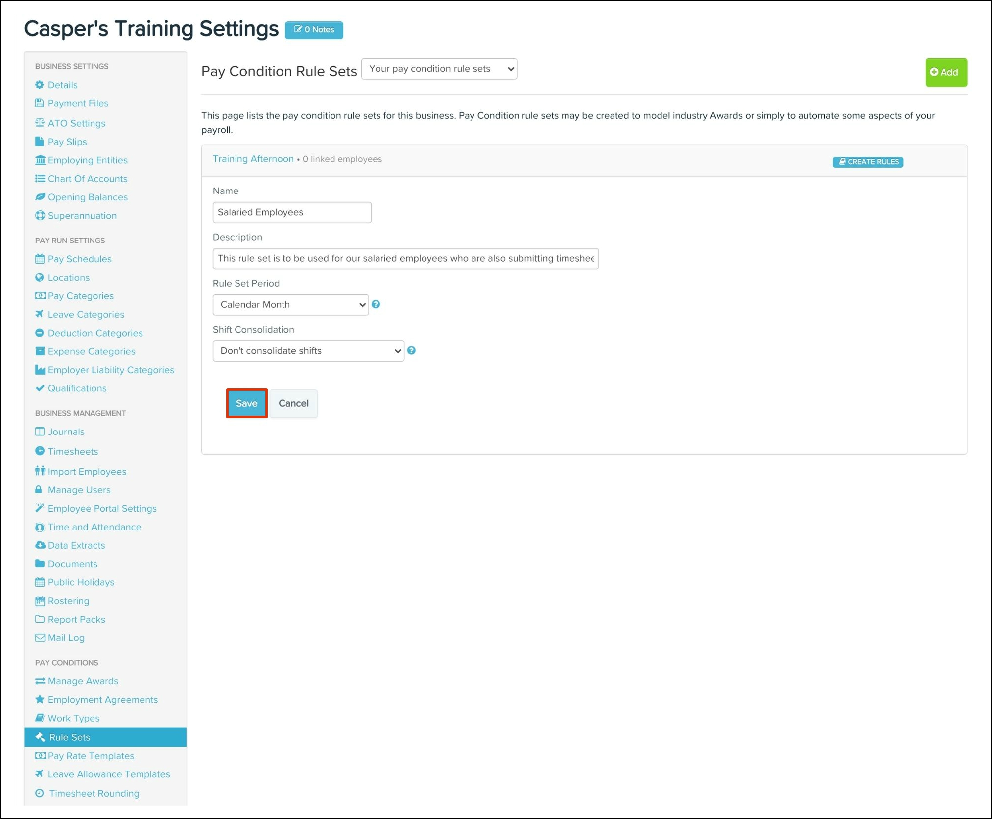 You can pay a salaried employee in the same pay run as a non-salaried employee, however you will first need to create a rule set. A rule set prevents timesheets from a salaried employee being applied in a pay run and will instead cause the platform to default to just paying the employee their normal working hours per week. The steps on how to undertake this are: