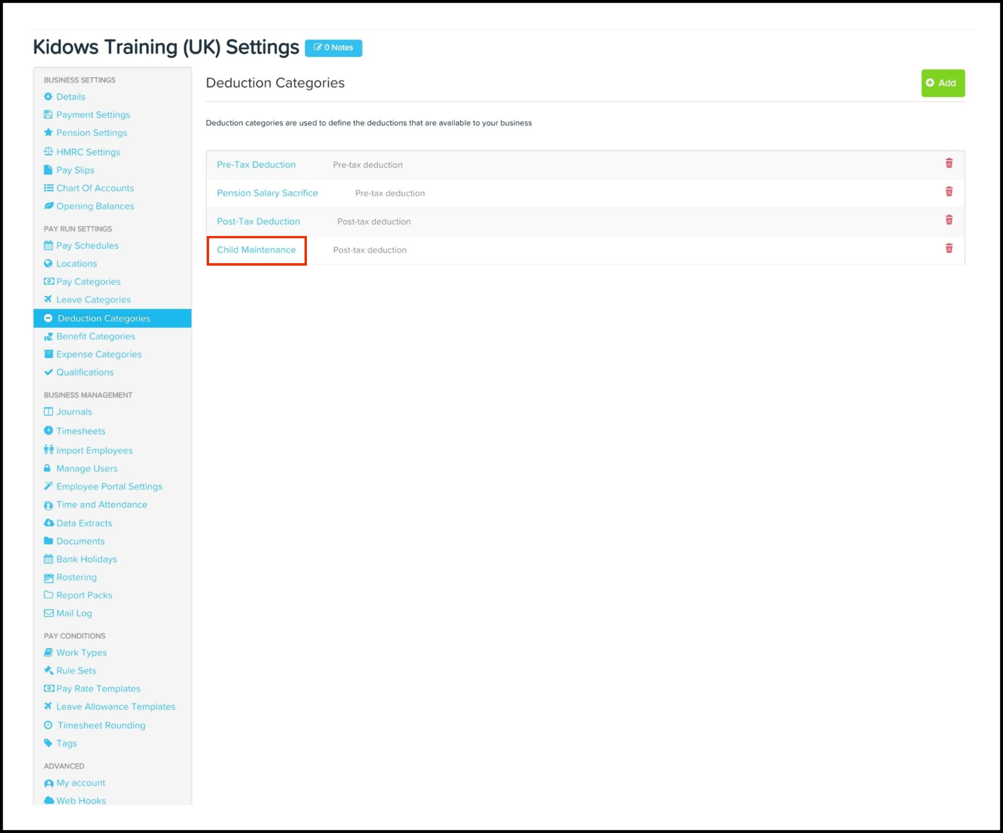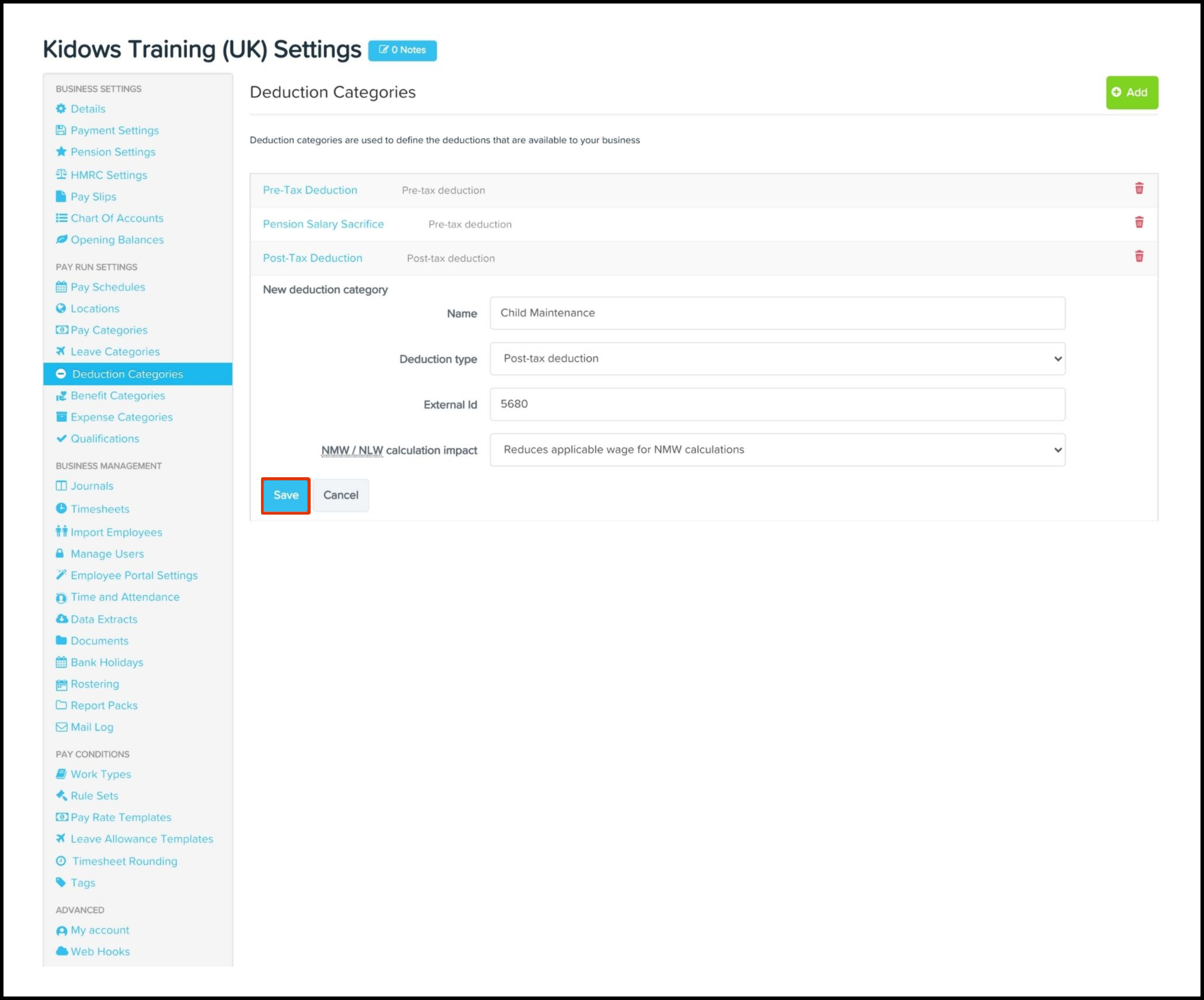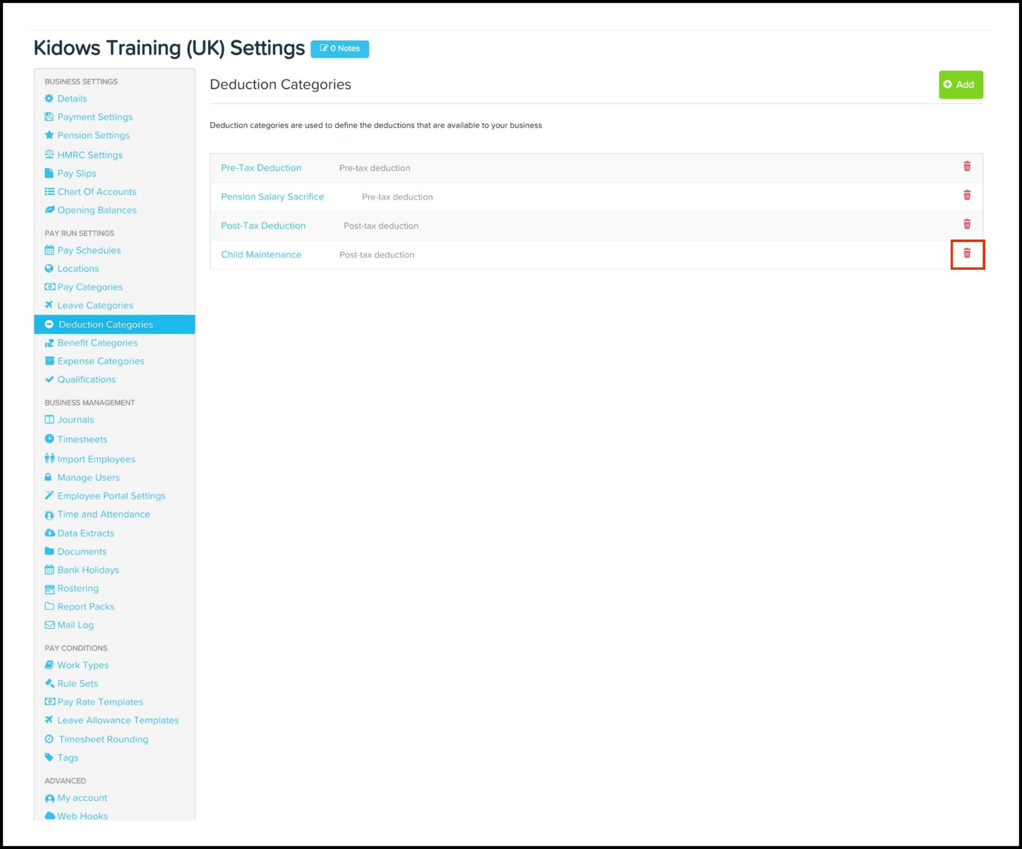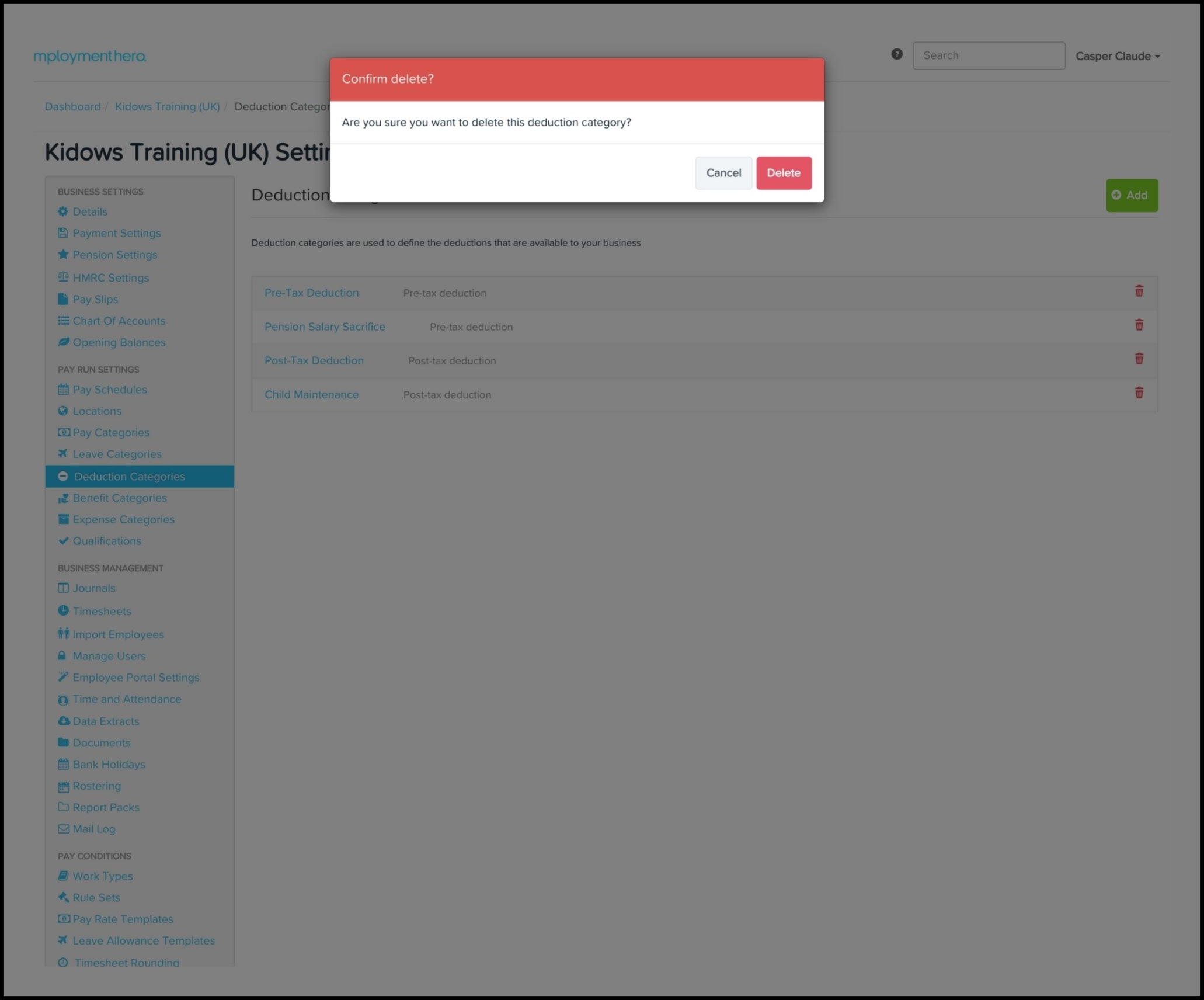 Manage deduction categories on the Payroll platform