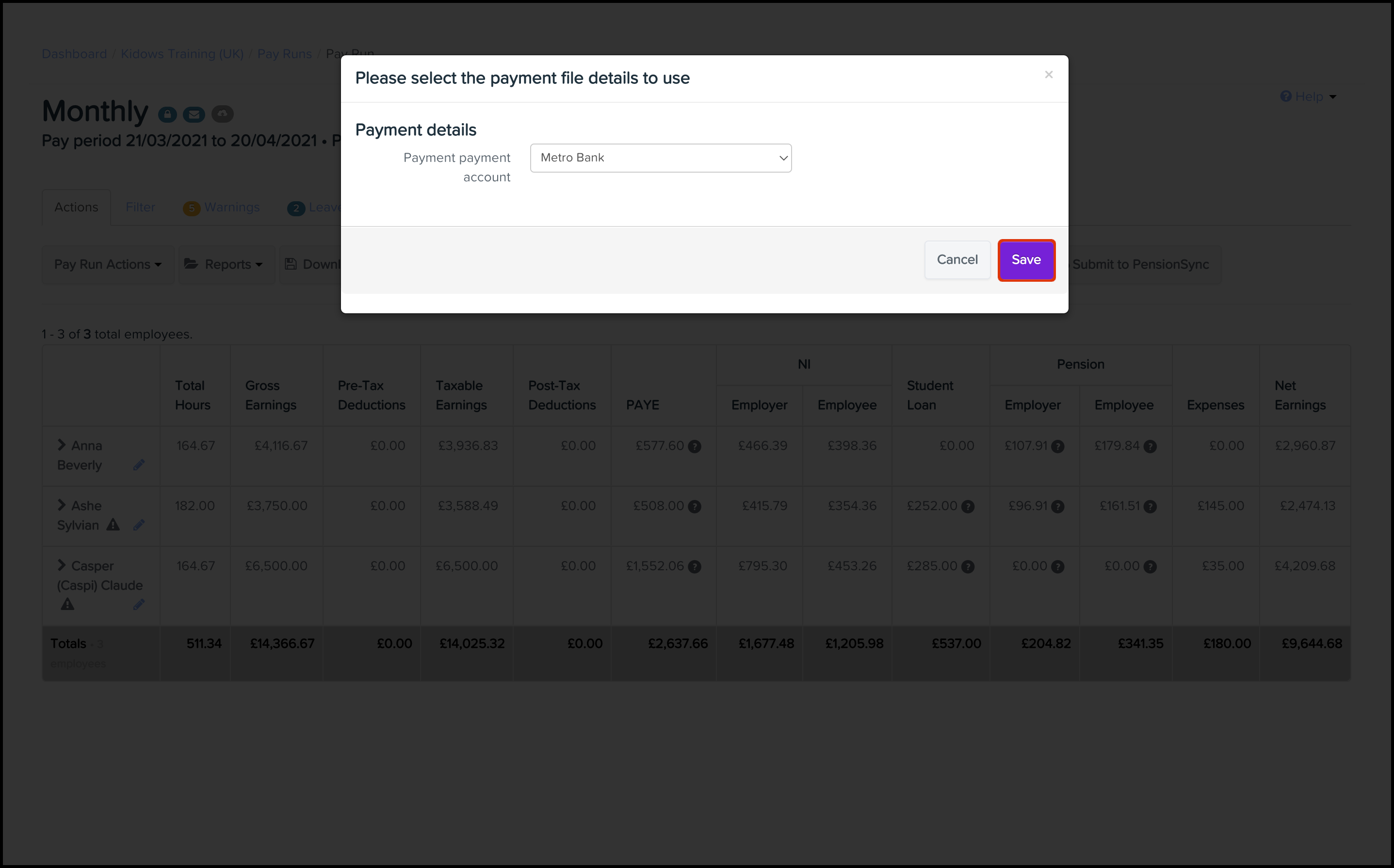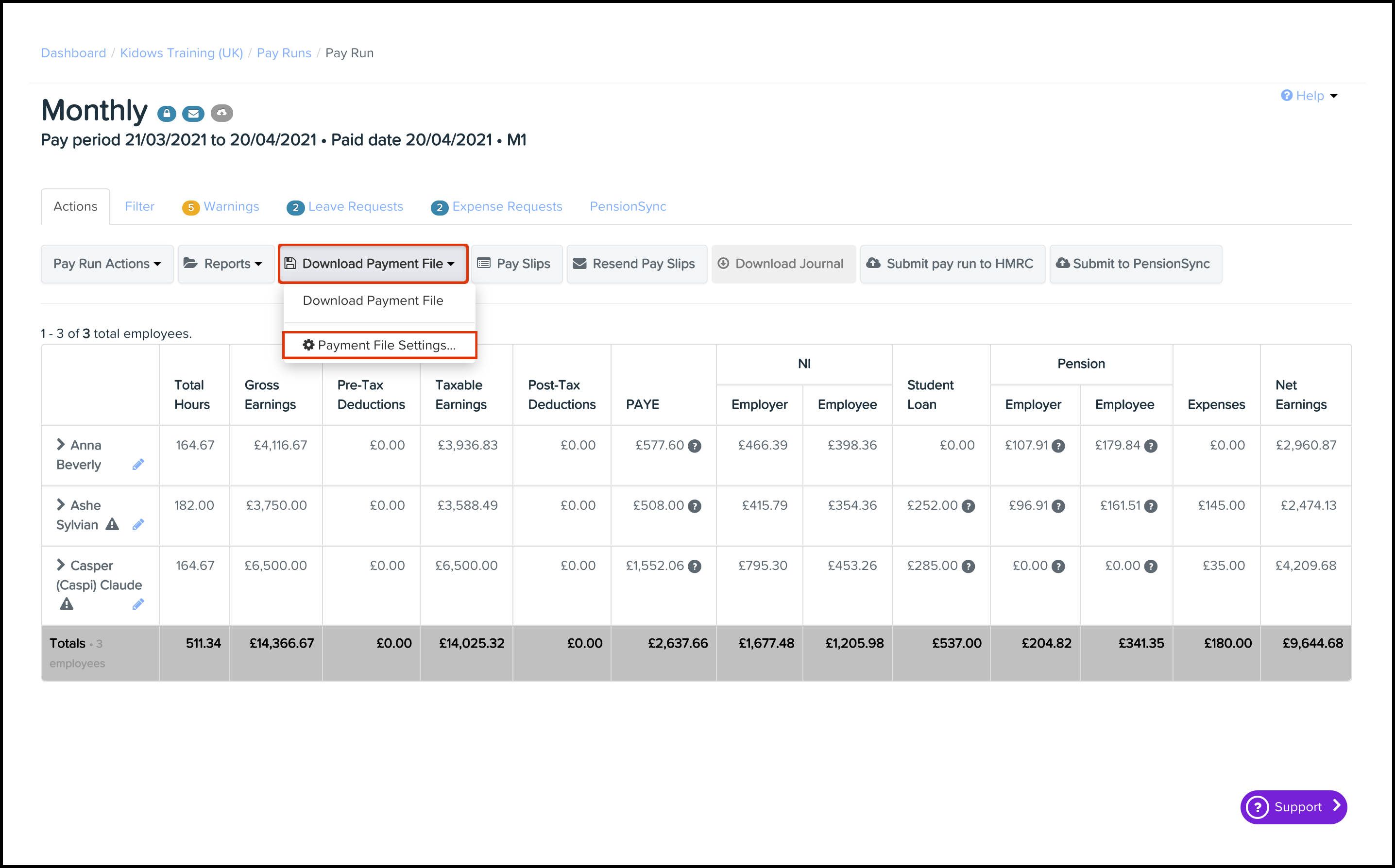 This feature allows you to download your pay run as a BACs file, that you can then upload to your nominated bank account portal. You need to have set up this feature within your organisation's business settings before you can use this feature. To read further details on how to undertake this process, refer to the following article.