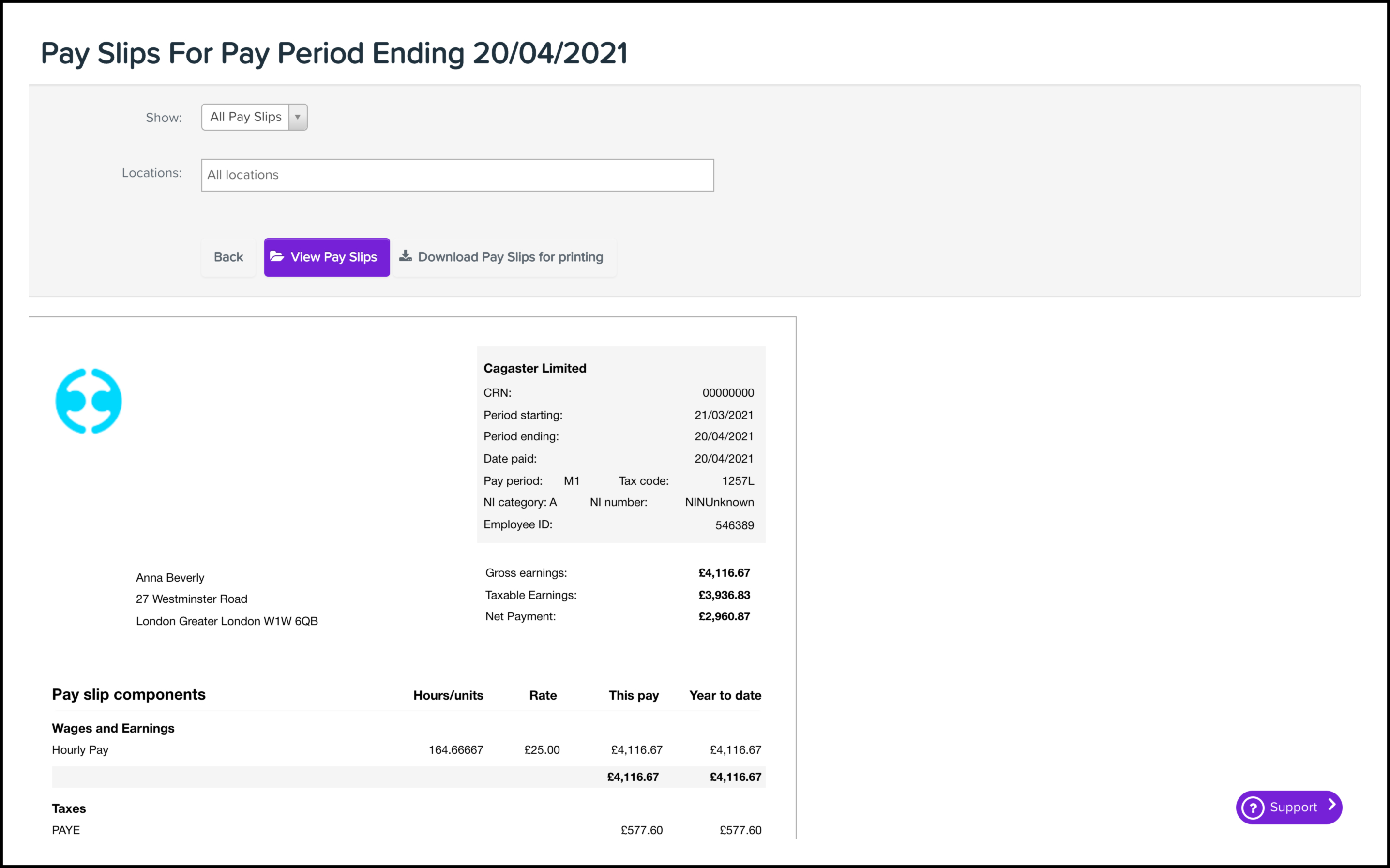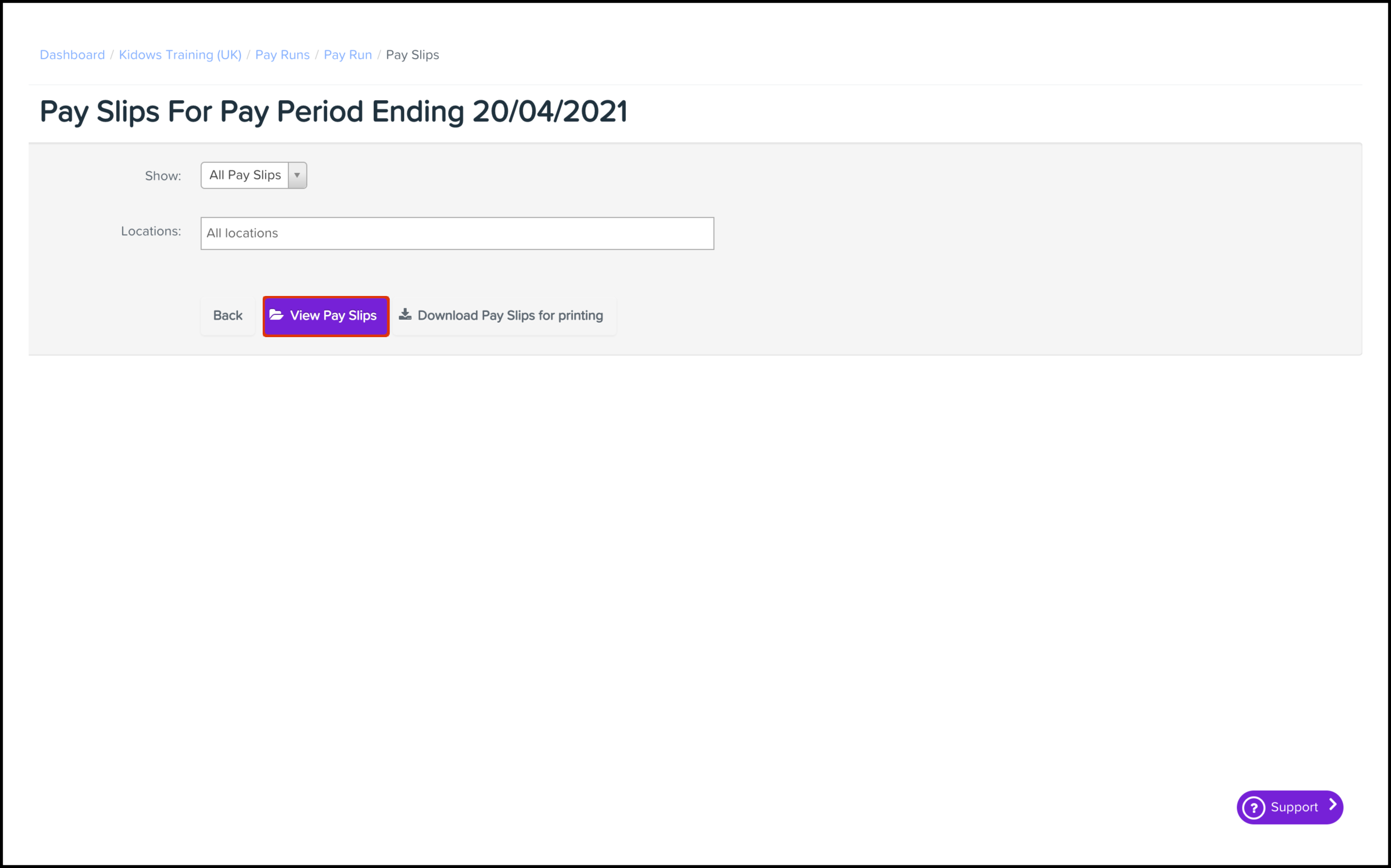 The below premises will walk you through how to view the finalised employee pay slips; download them as a PDF if required, and how to resend the pay slips to your employees