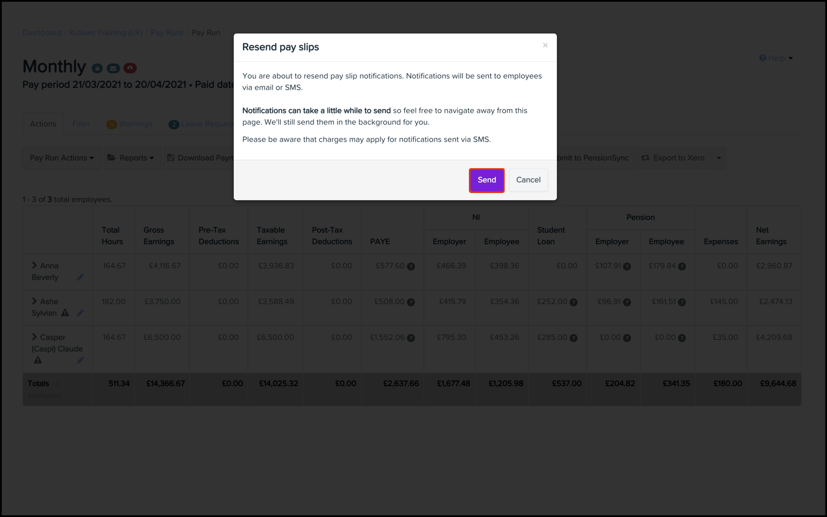 The below premise will walk you through how to send the finalised pay slips to your employees